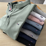 Демисезонный лонгслив, футболка polo для отдыха, с вышивкой