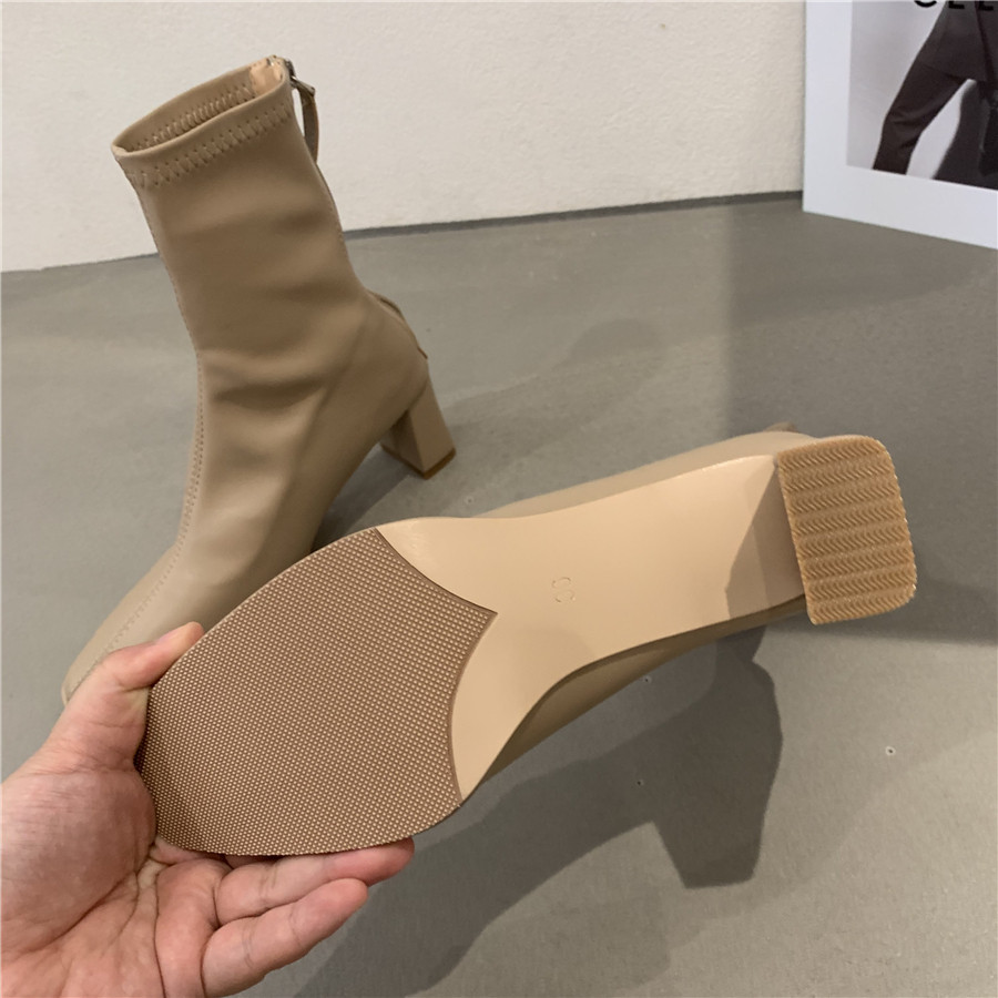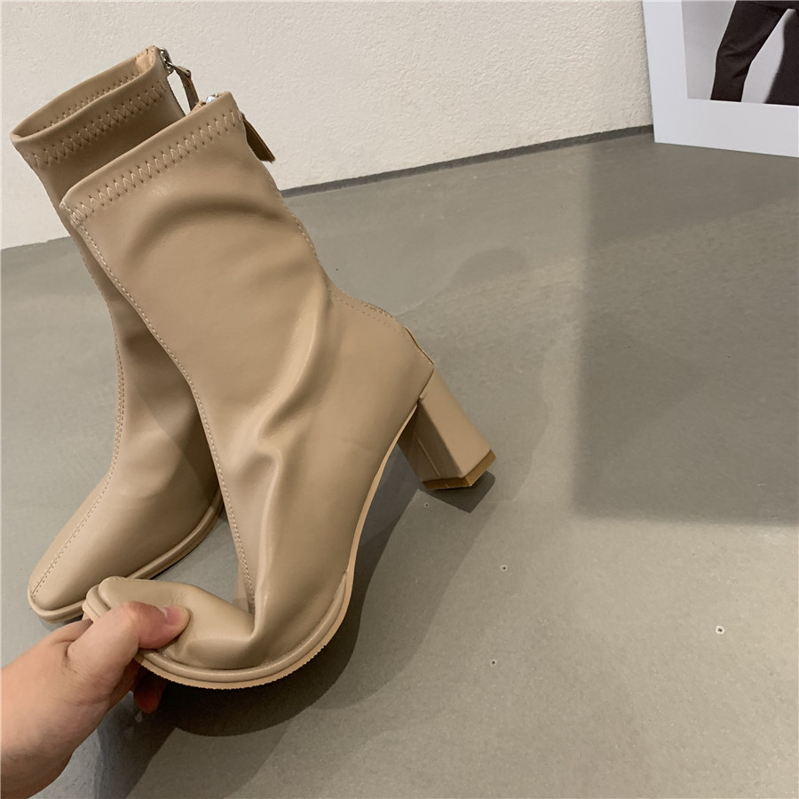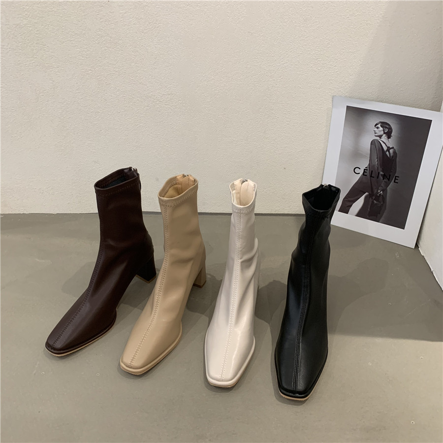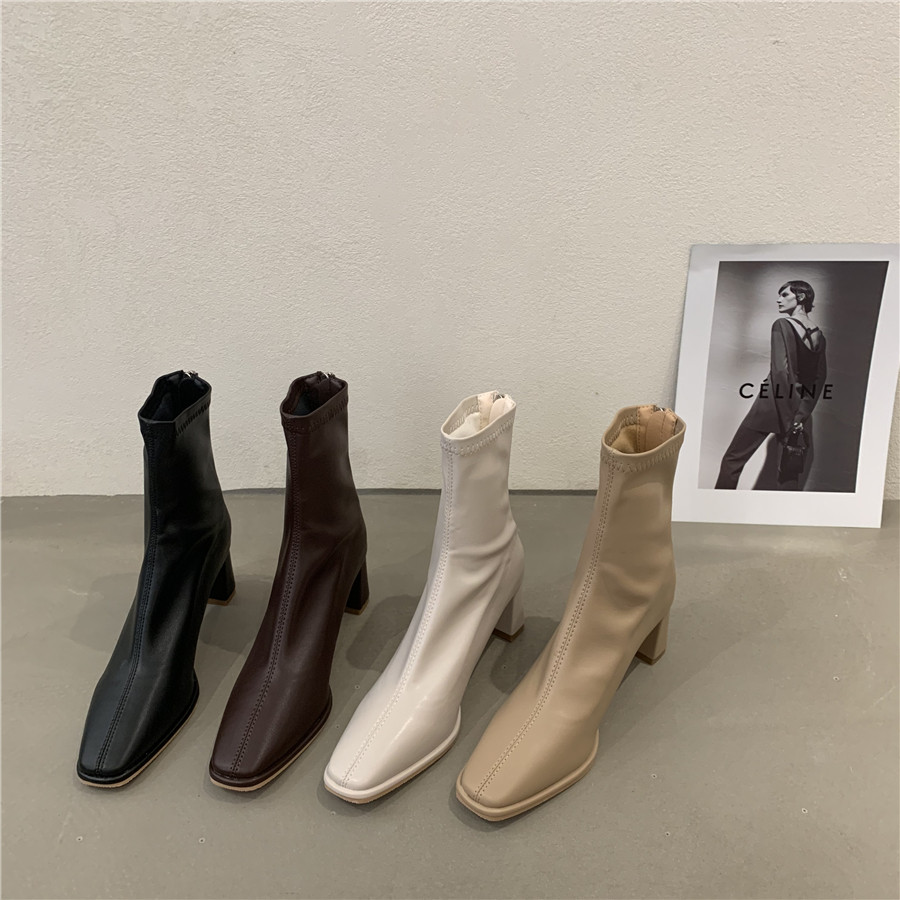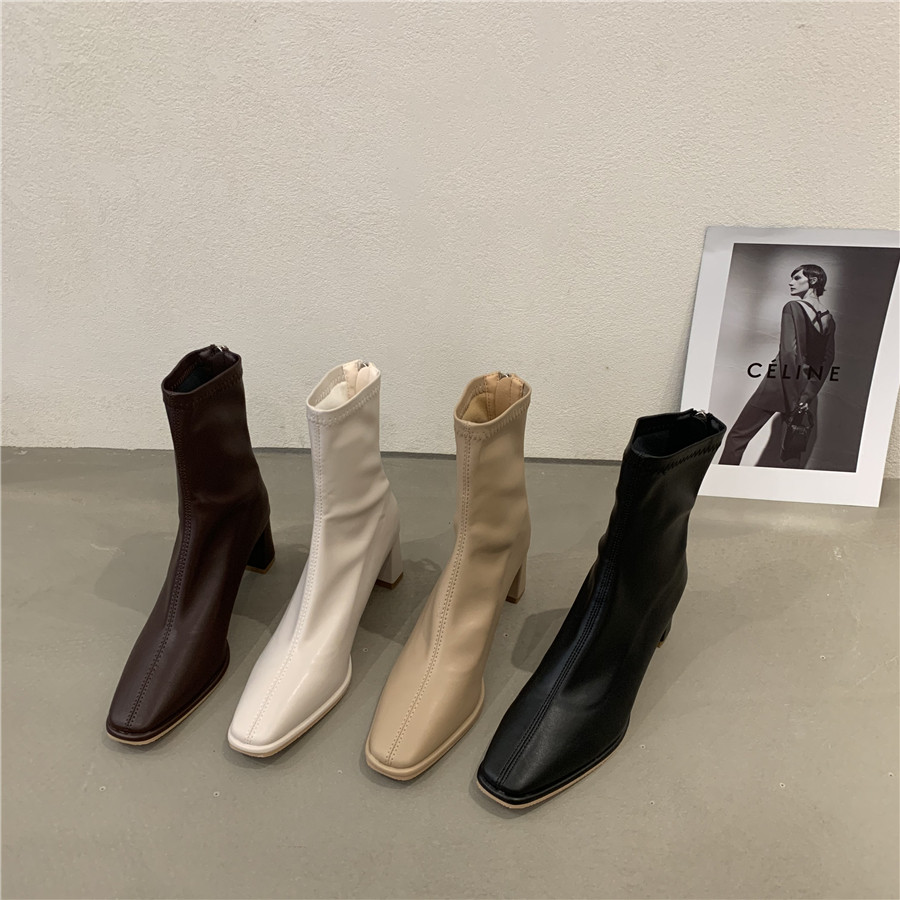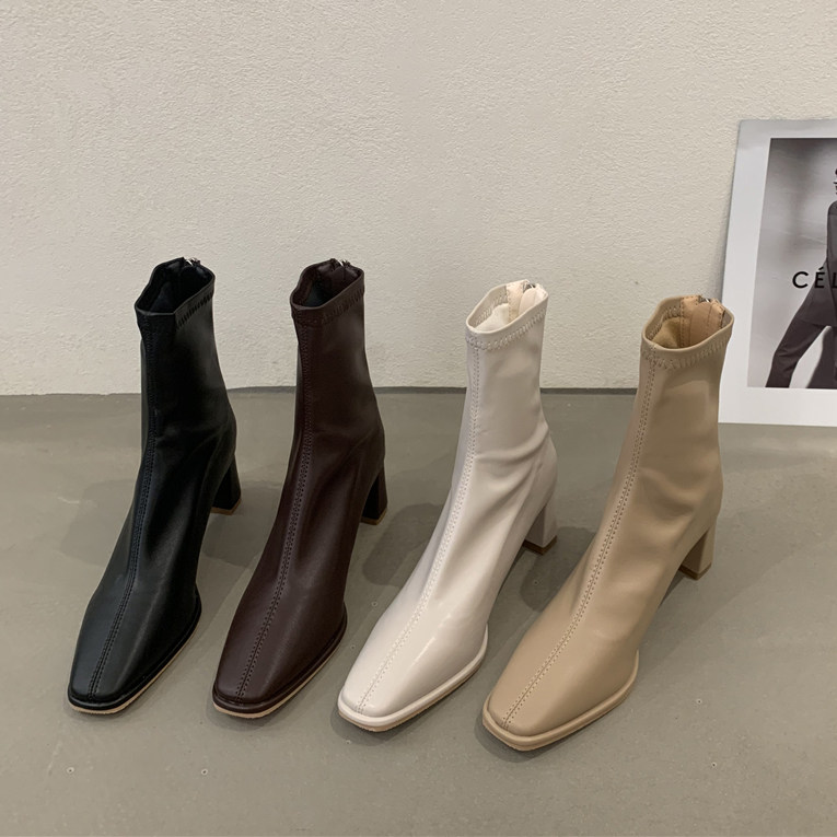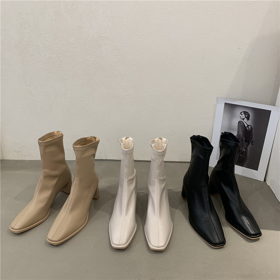 Белые демисезонные сапоги на высоком каблуке, ботинки, осенние