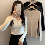 Трикотажный приятный телу осенний ретро дизайнерский лонгслив, в корейском стиле, тренд сезона, большой размер