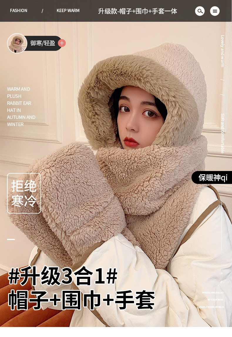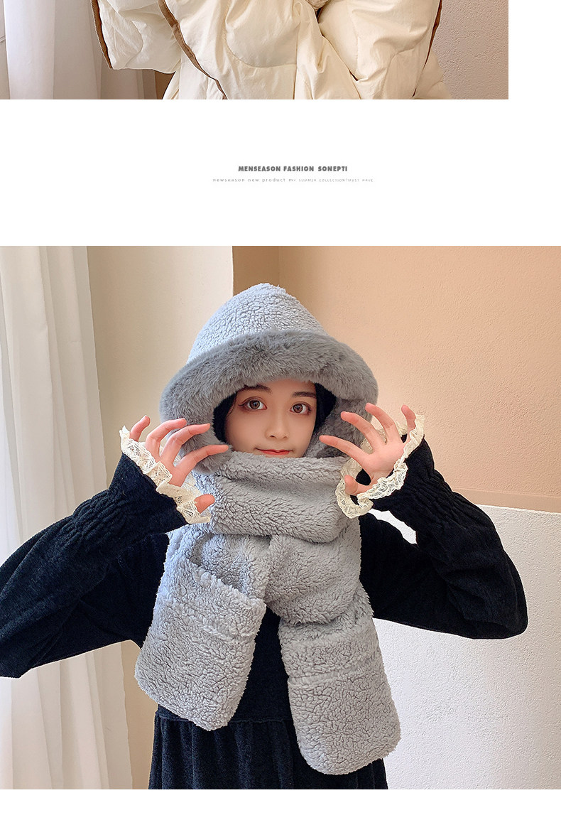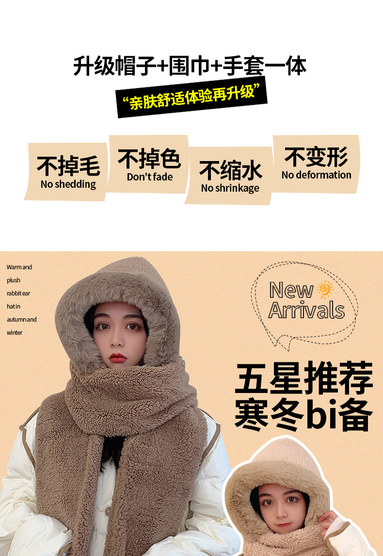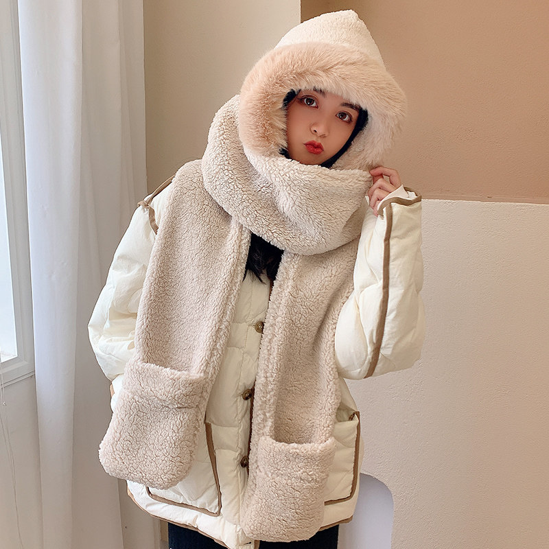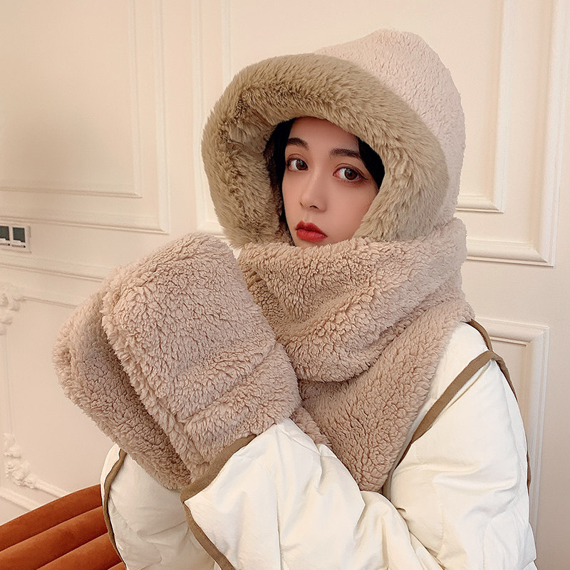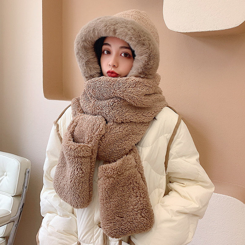 Зимний милый шарф, универсальная шапка, зимние перчатки с капюшоном, в корейском стиле