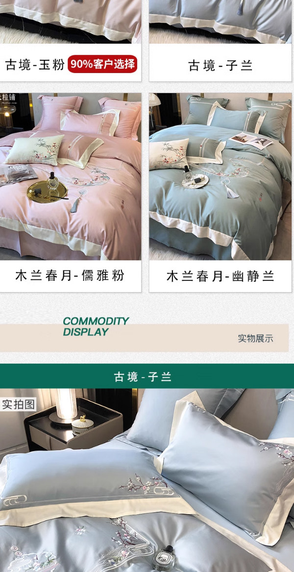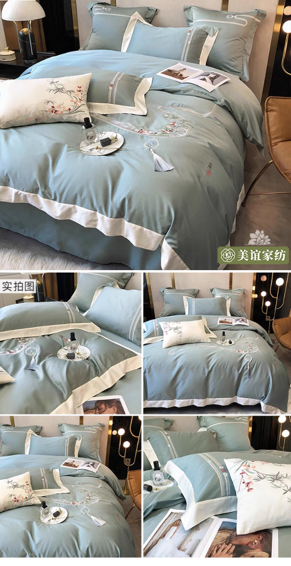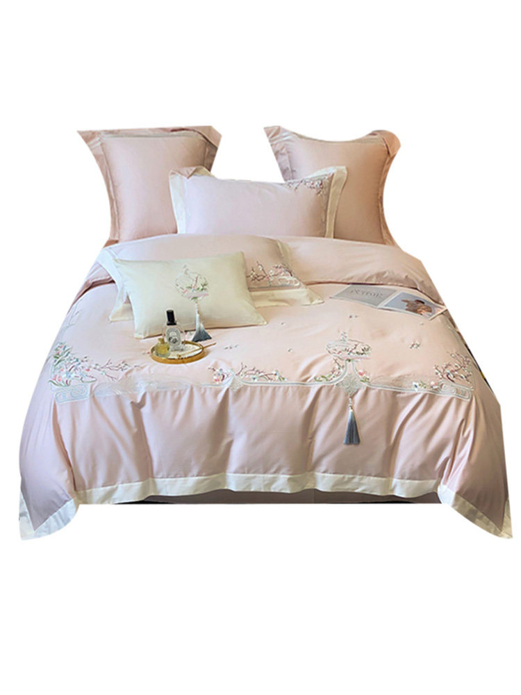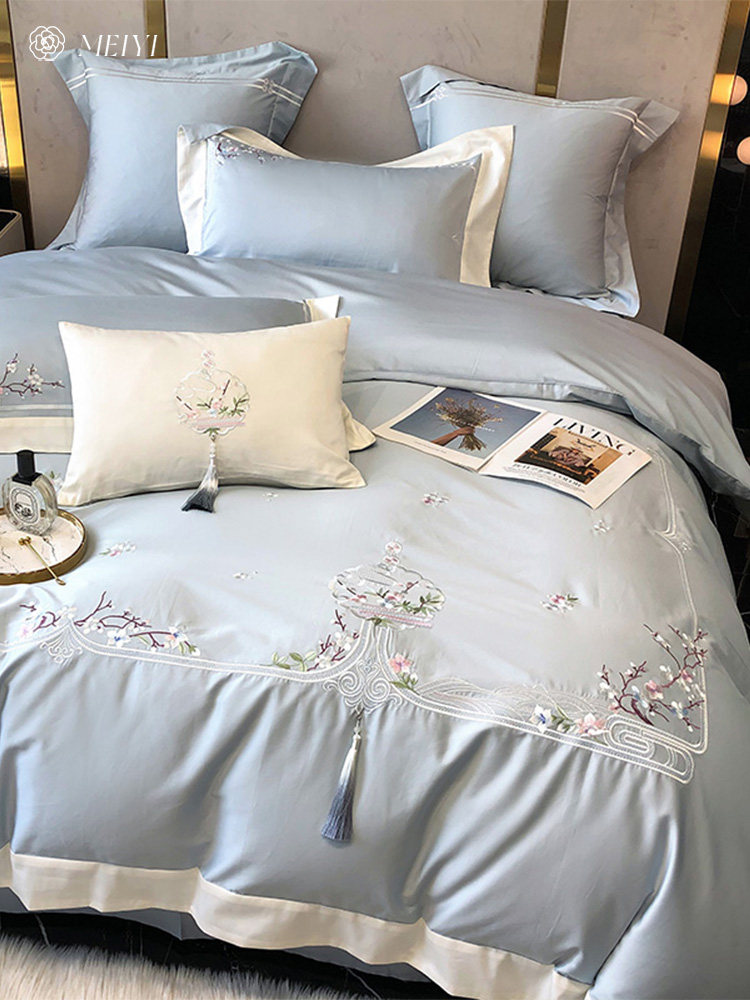 Хлопковый комплект, покрывало, китайский стиль, 4 предмета, с вышивкой, легкий роскошный стиль