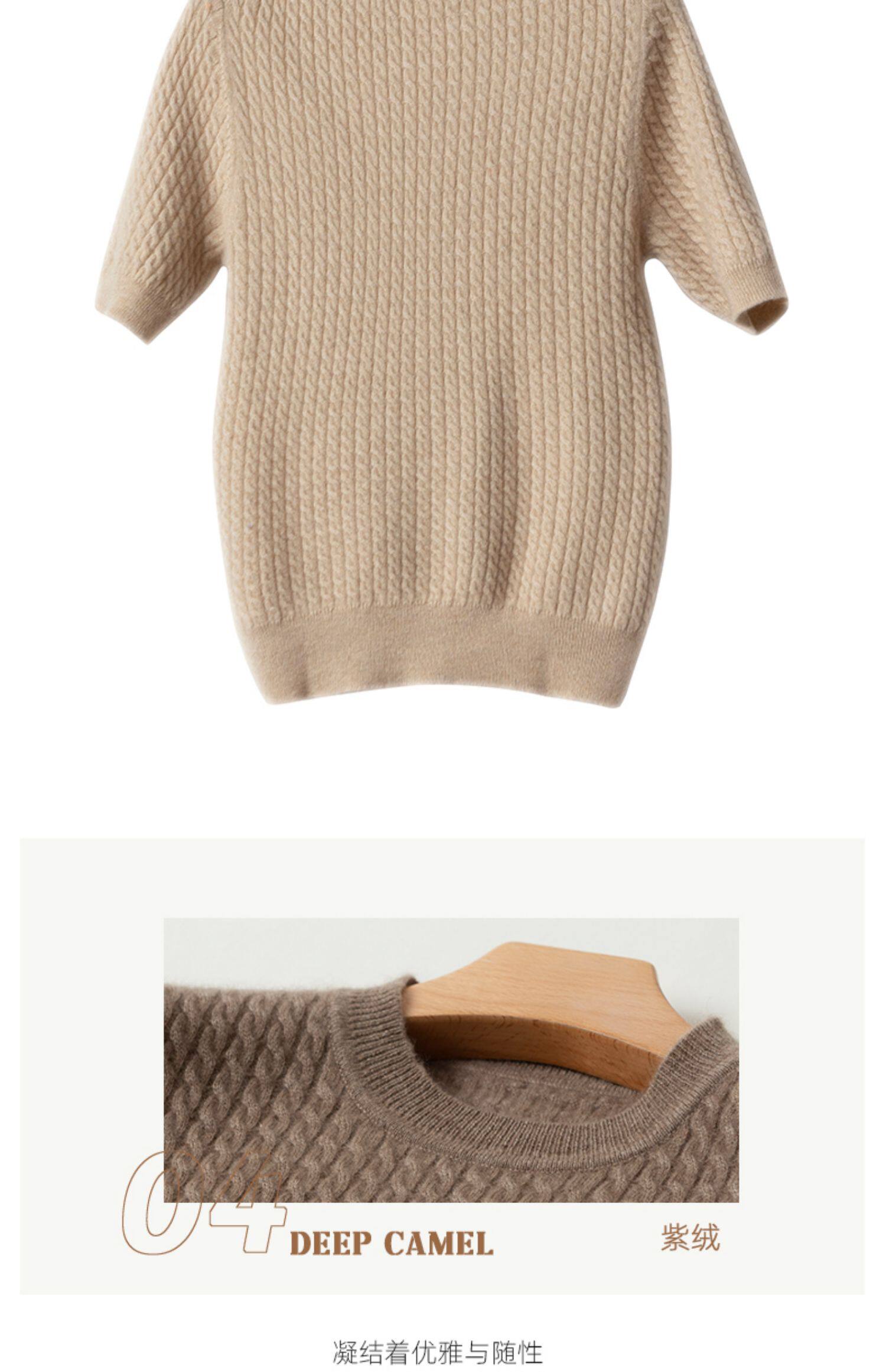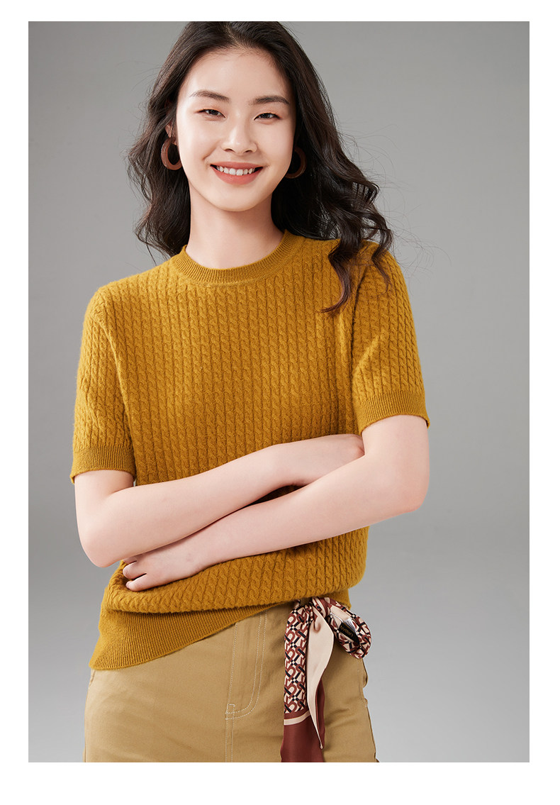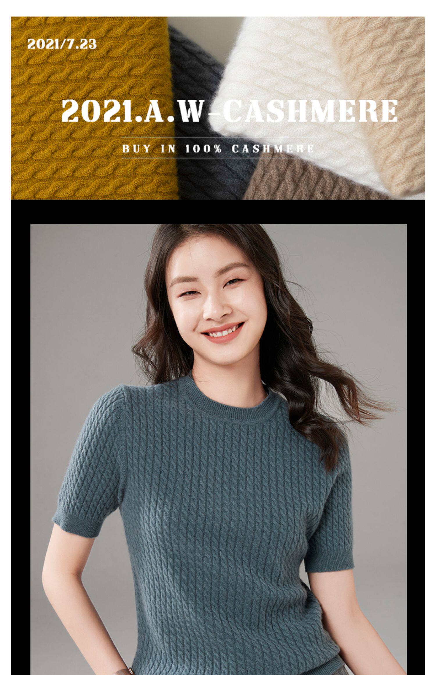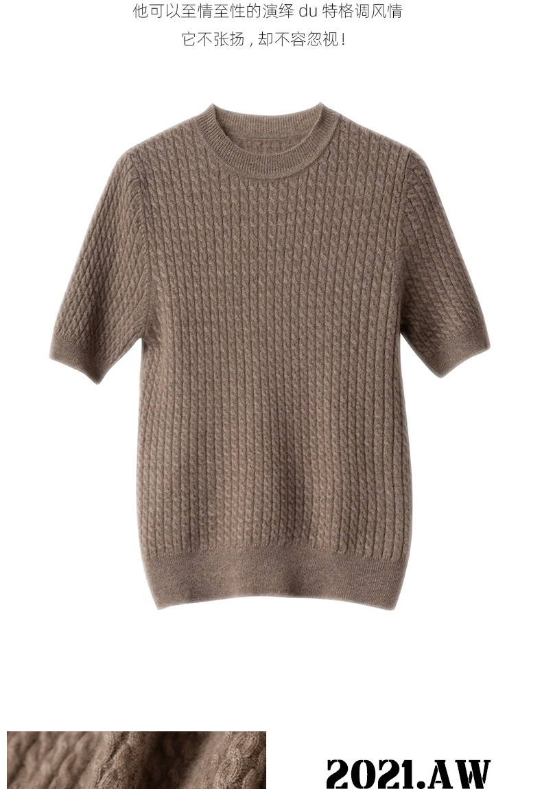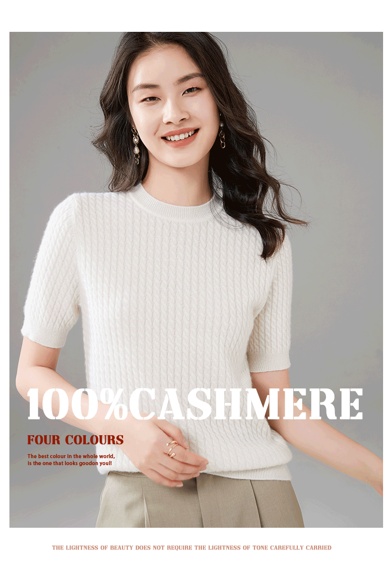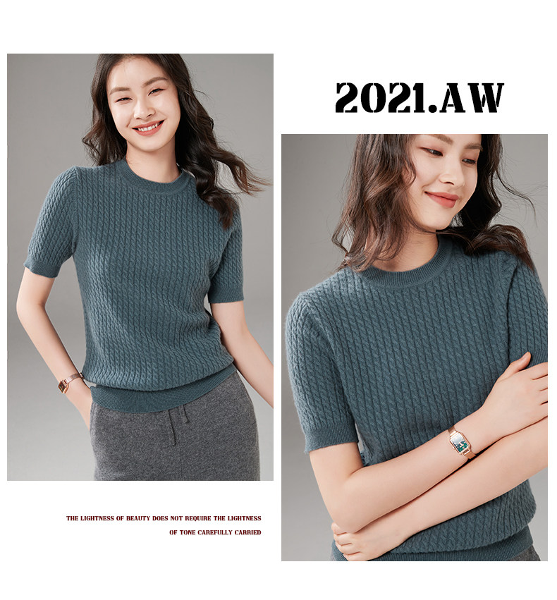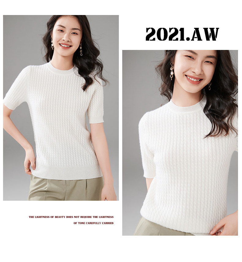 Демисезонный кашемировый трикотажный свитер с круглым воротником, коллекция 2021, короткий рукав, в корейском стиле