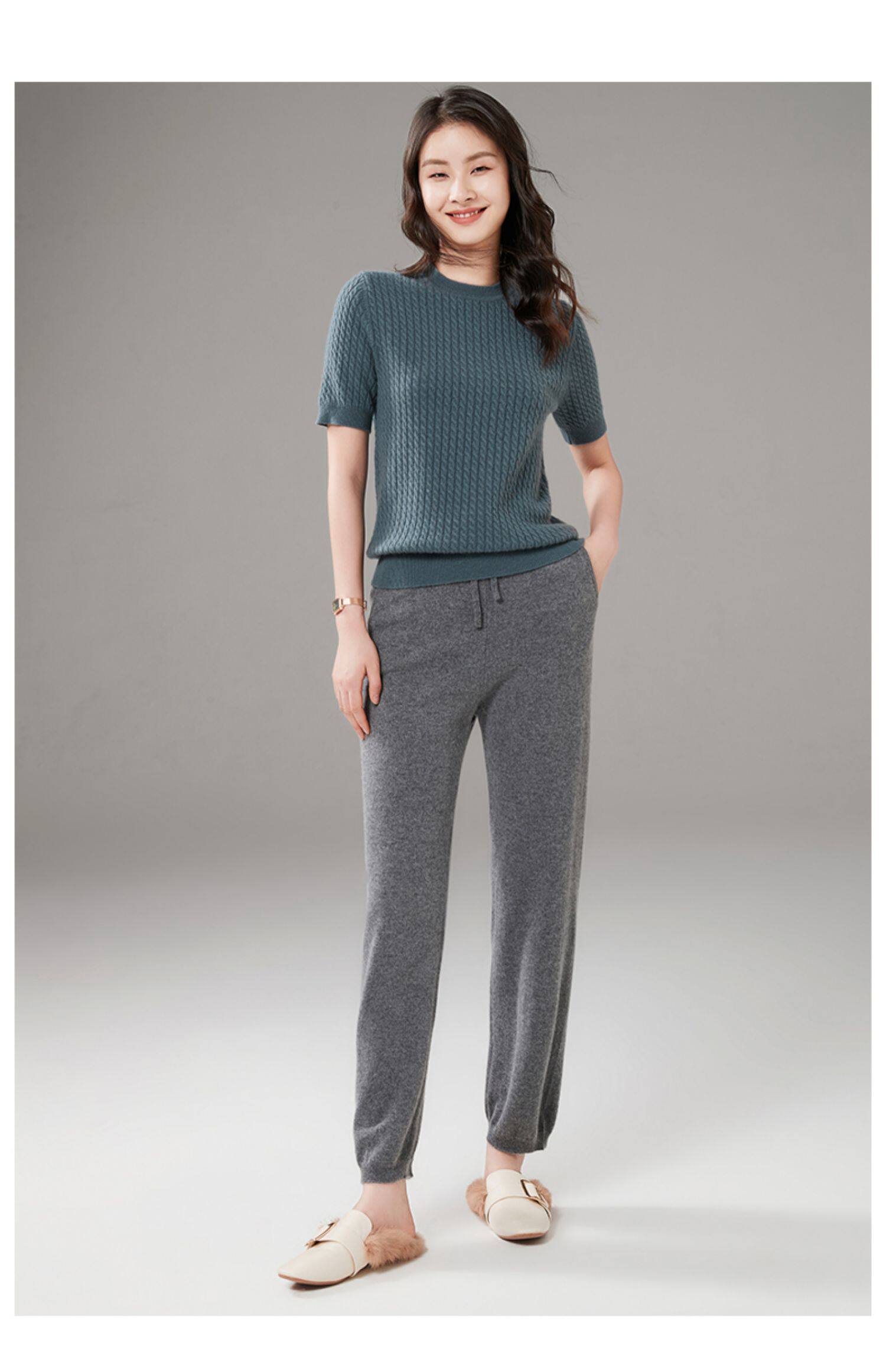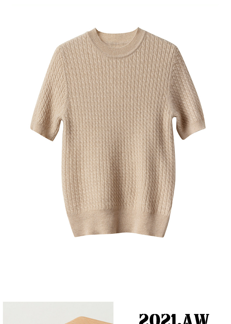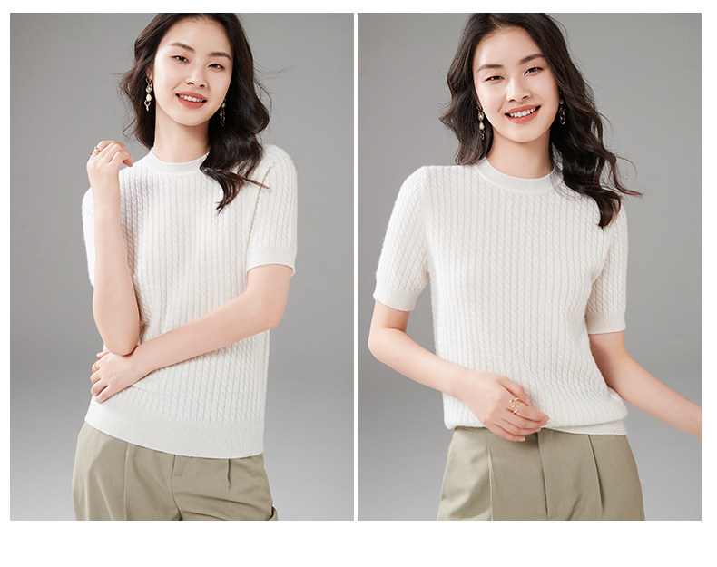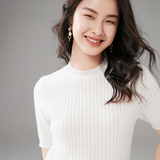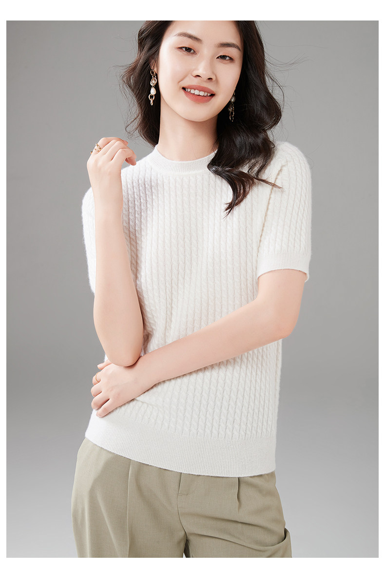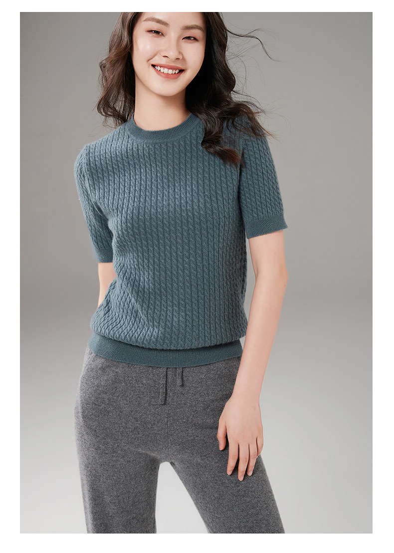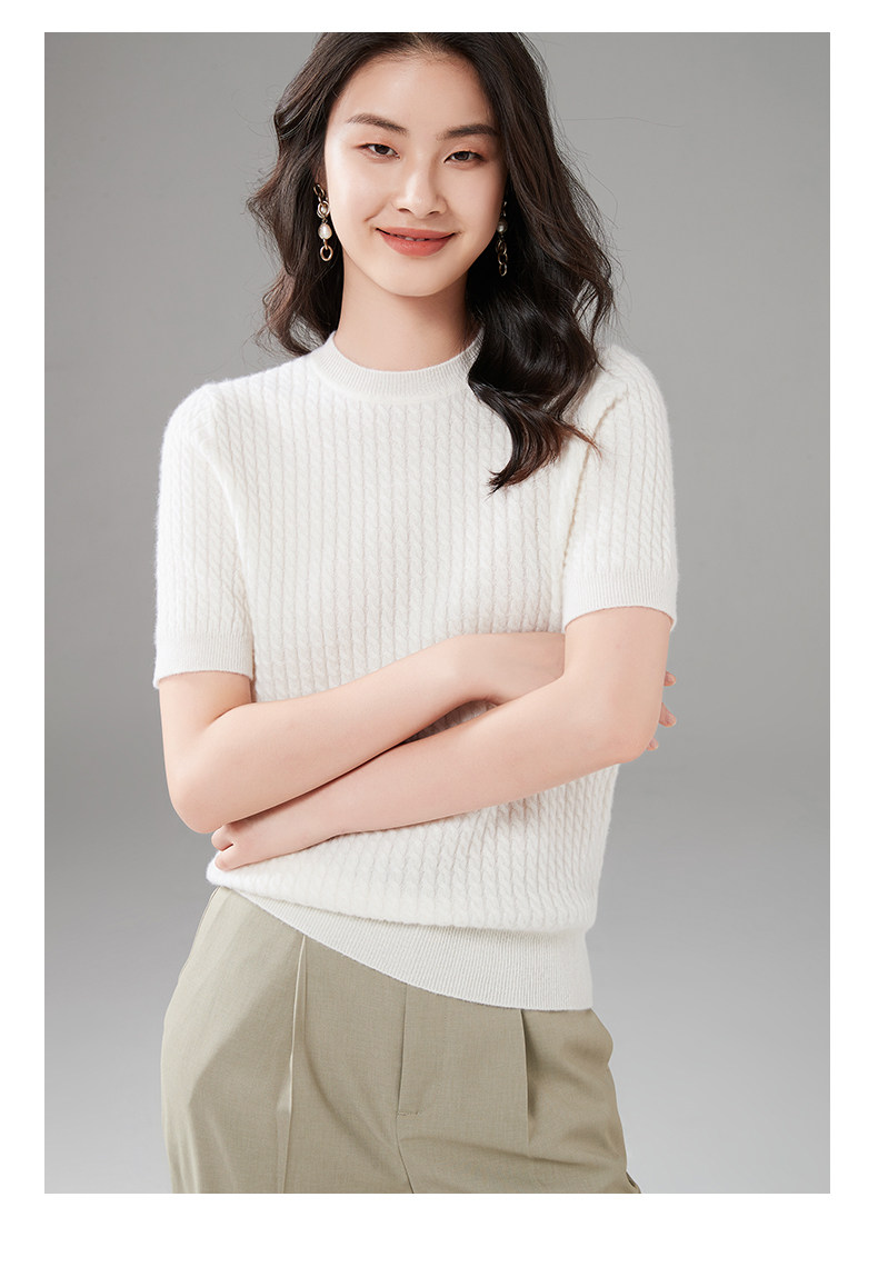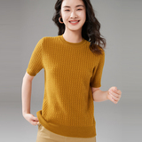 Демисезонный кашемировый трикотажный свитер с круглым воротником, коллекция 2021, короткий рукав, в корейском стиле