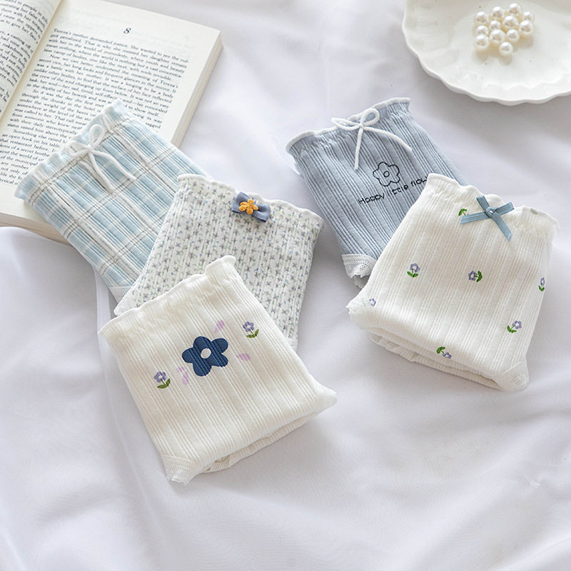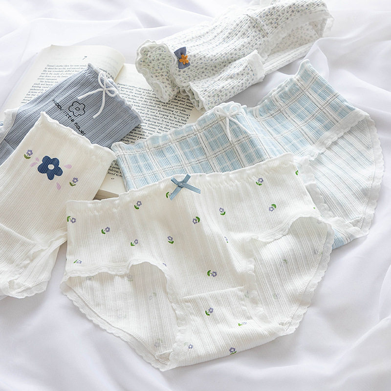 Свежее милое комфортное кружевное нижнее белье, цветочный принт, в цветочек