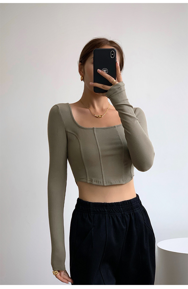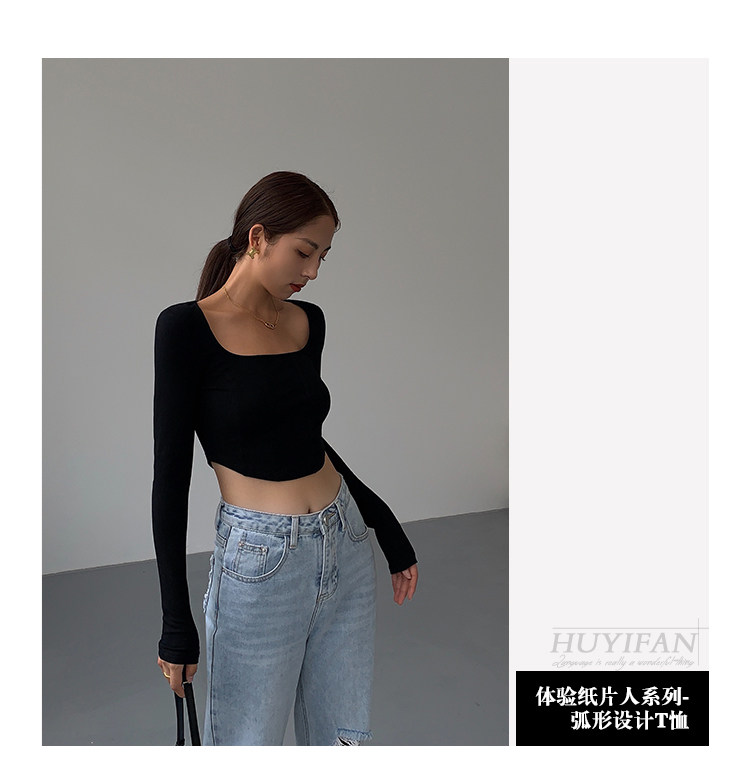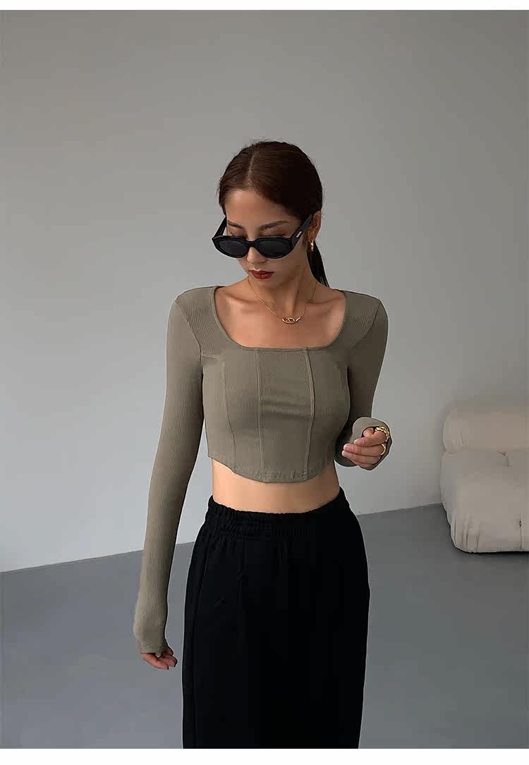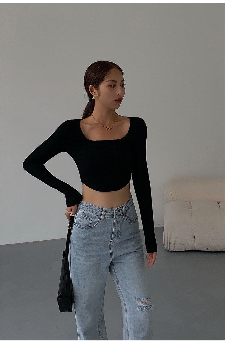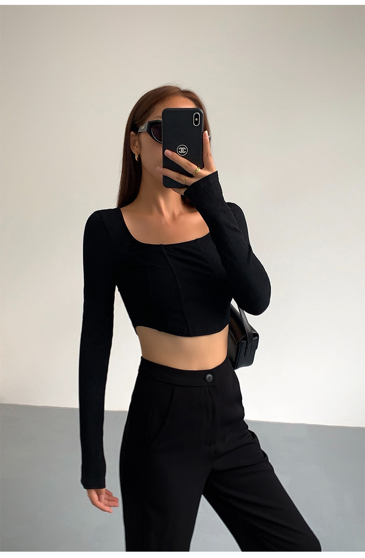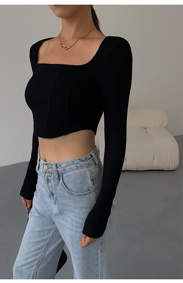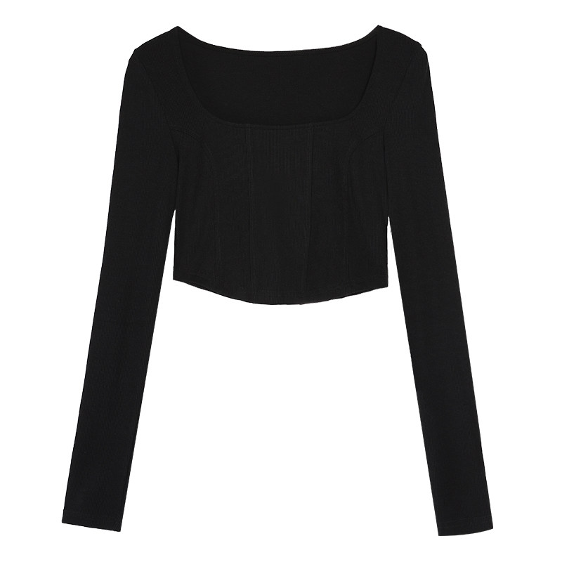 Черный приталенный короткий базовый приятный телу лонгслив, квадратный вырез