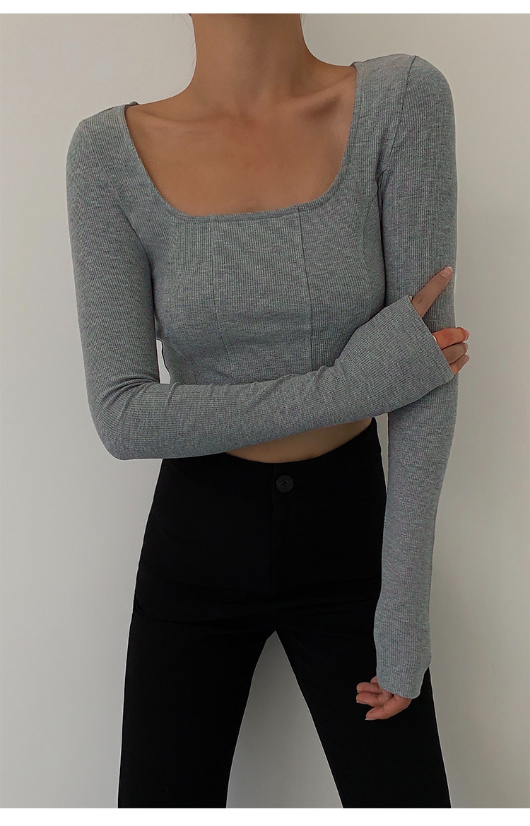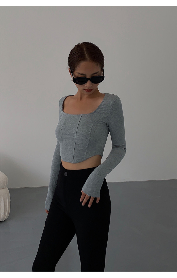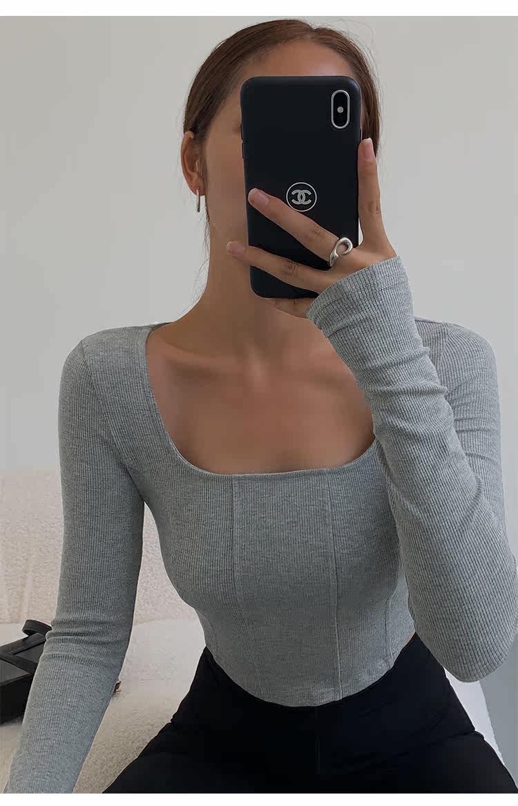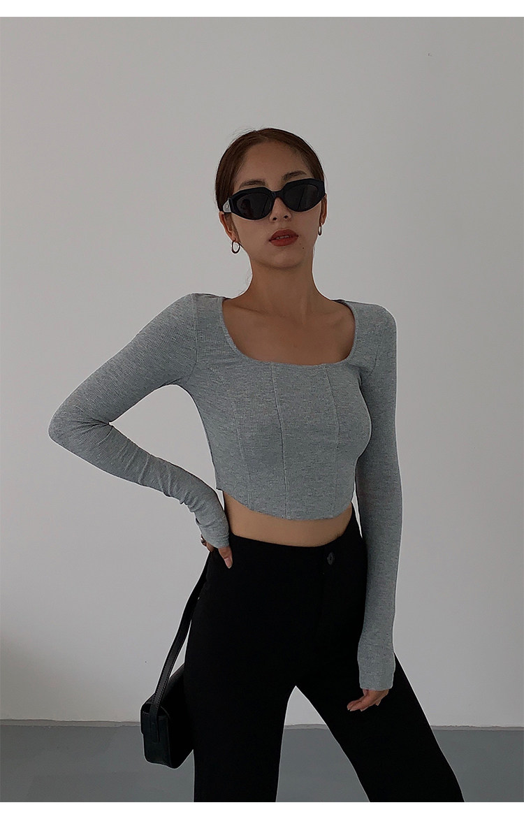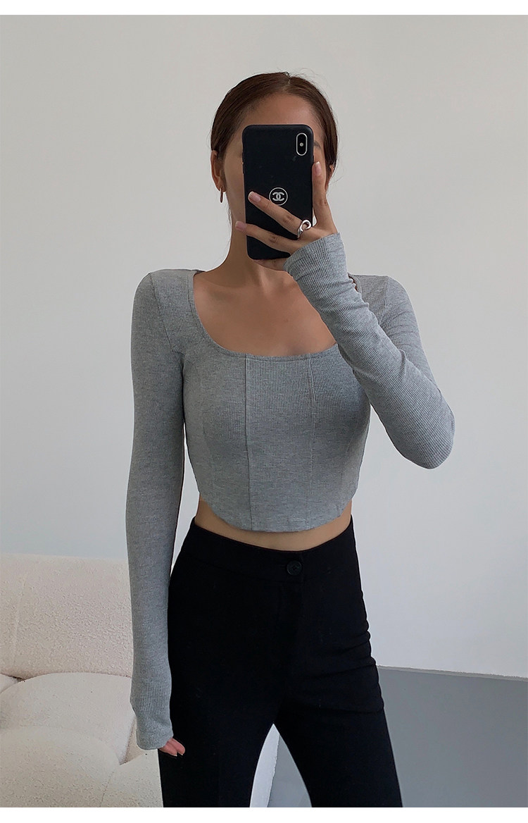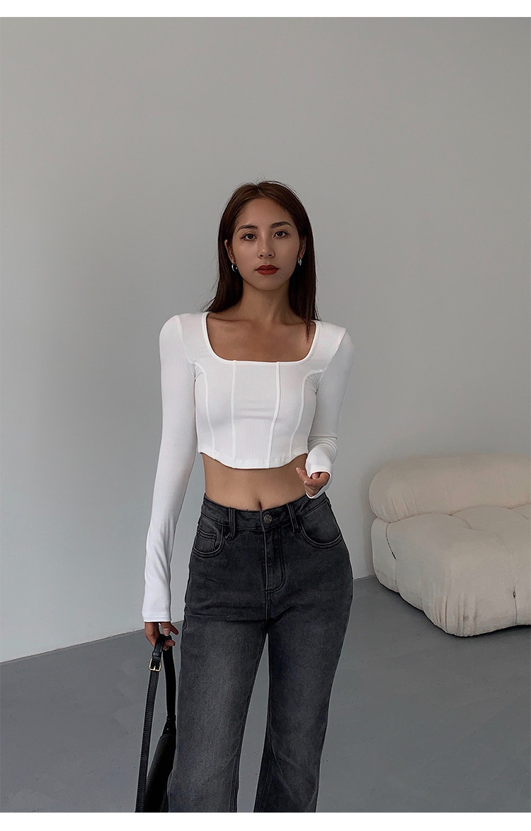 Черный приталенный короткий базовый приятный телу лонгслив, квадратный вырез