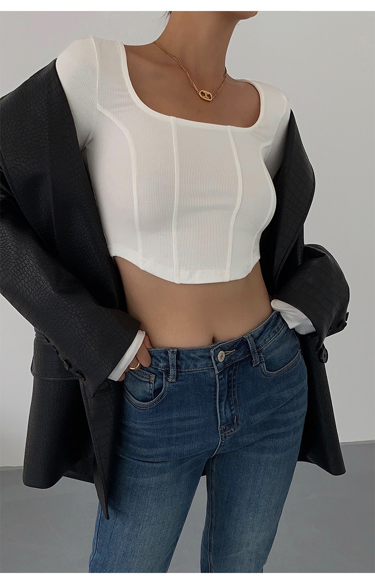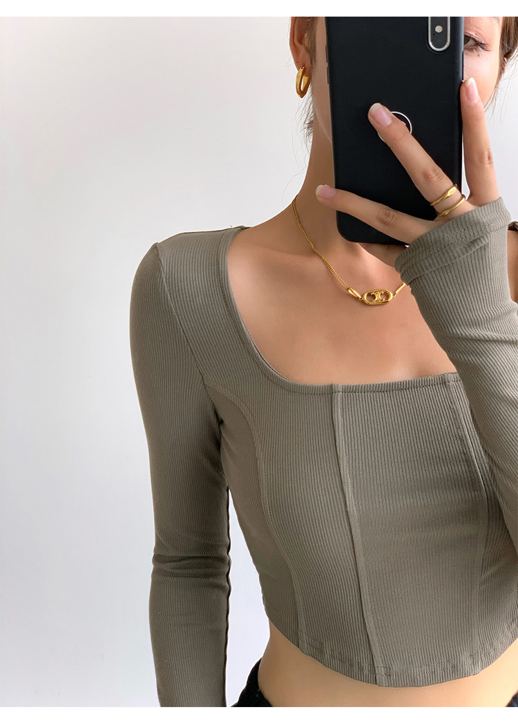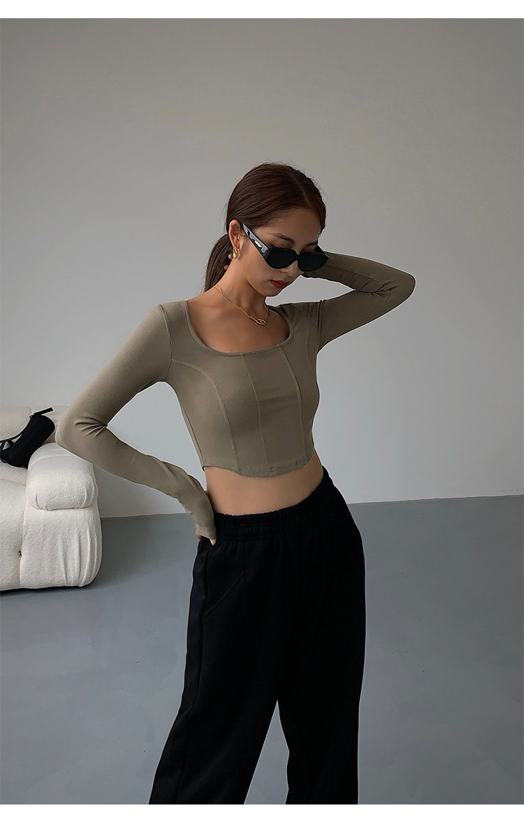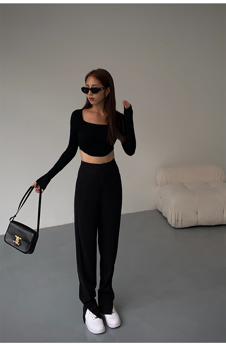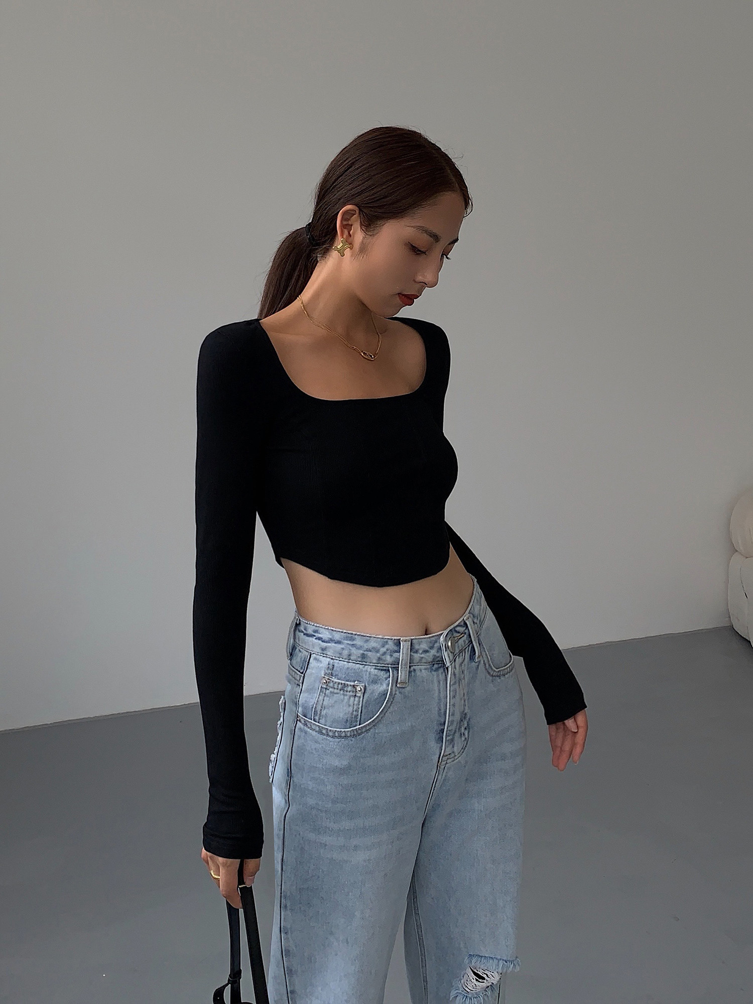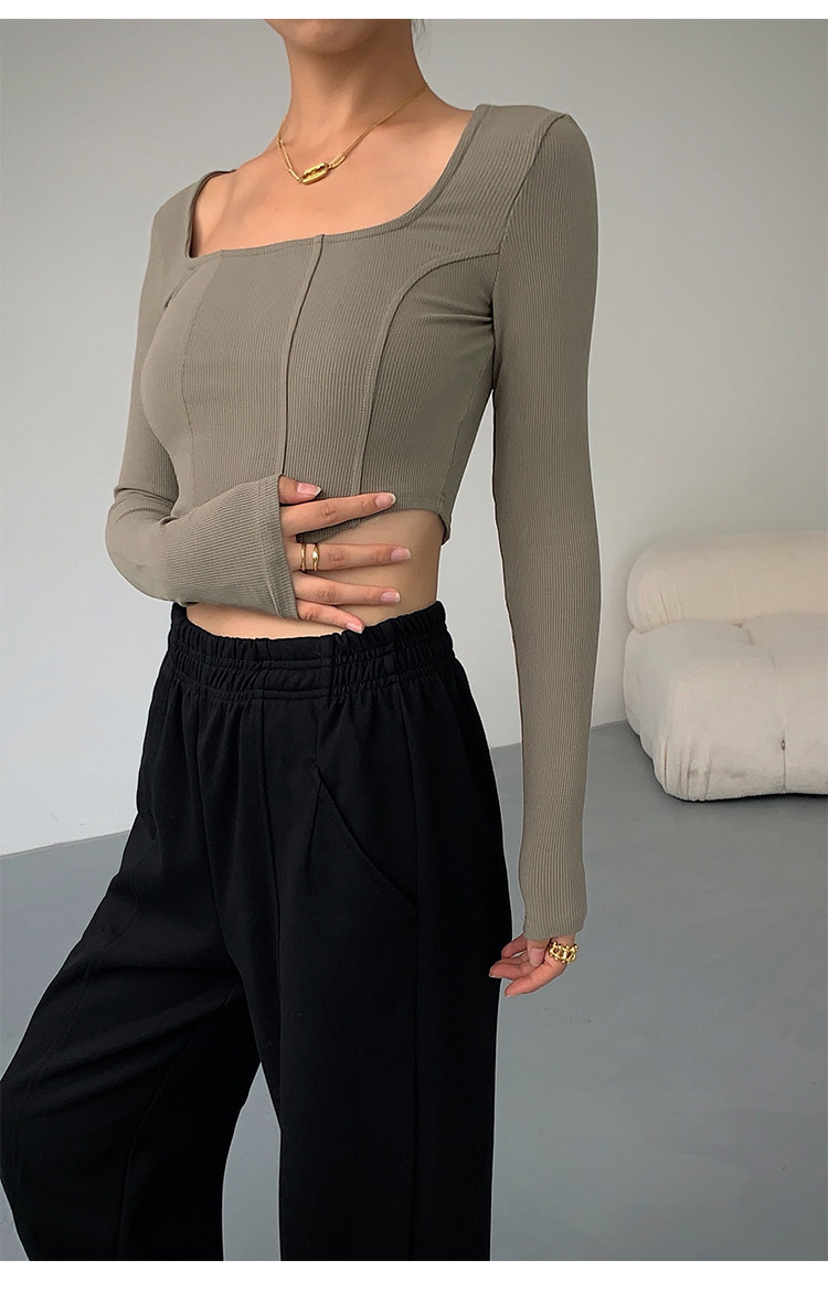 Черный приталенный короткий базовый приятный телу лонгслив, квадратный вырез