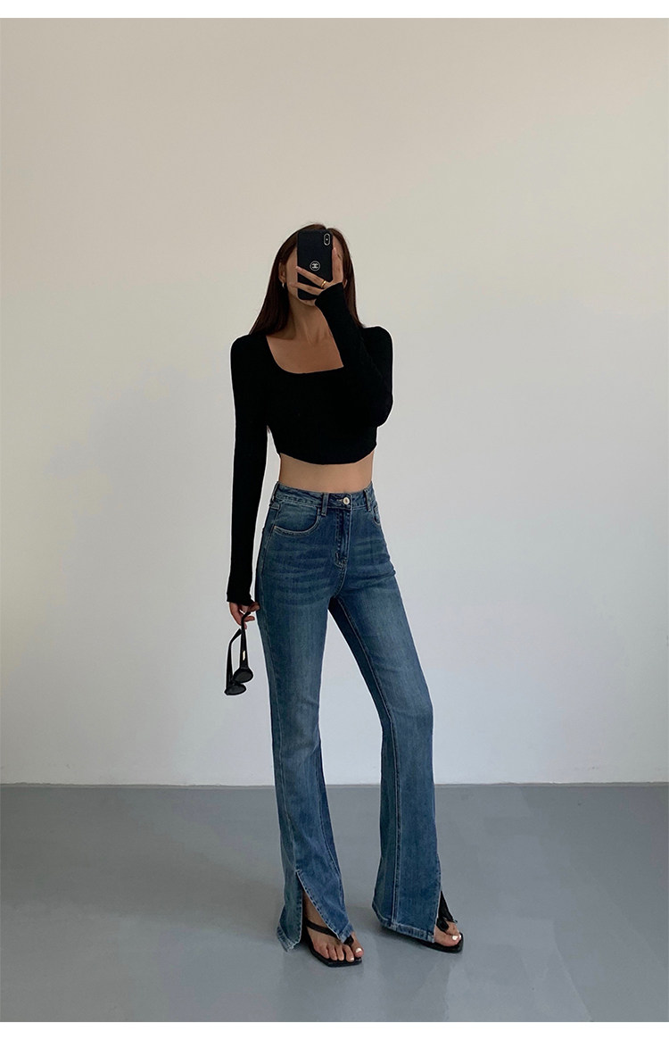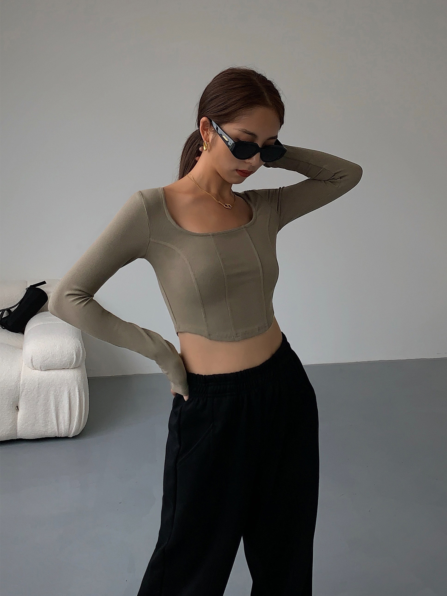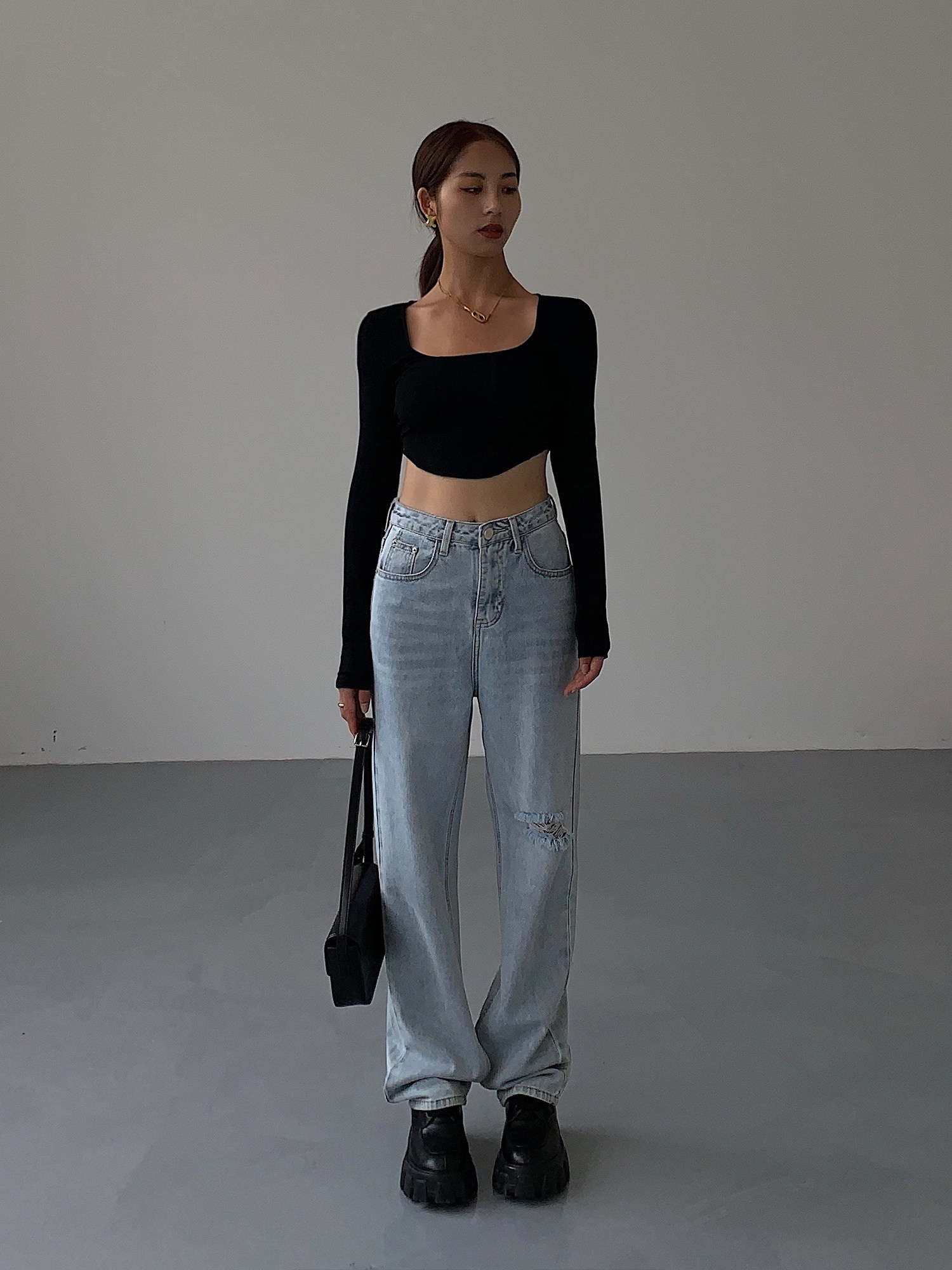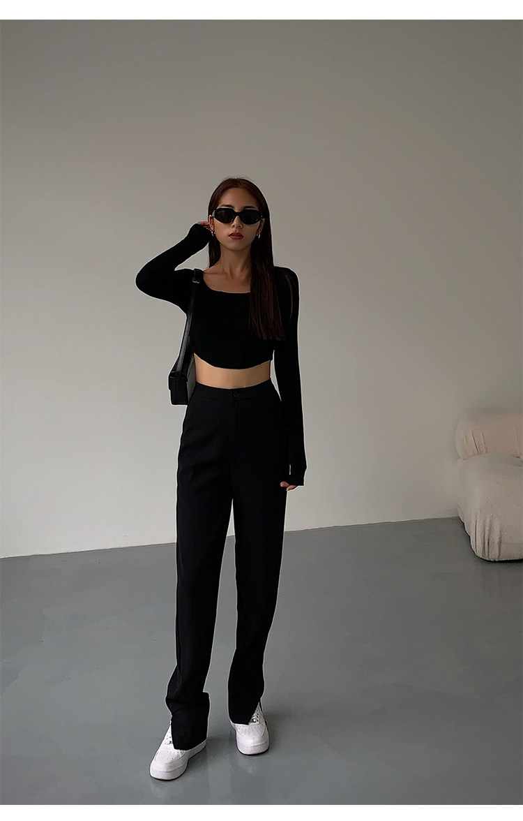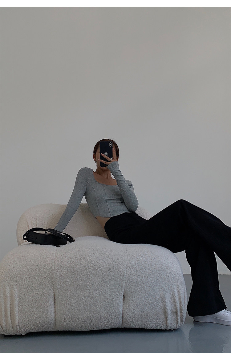 Черный приталенный короткий базовый приятный телу лонгслив, квадратный вырез