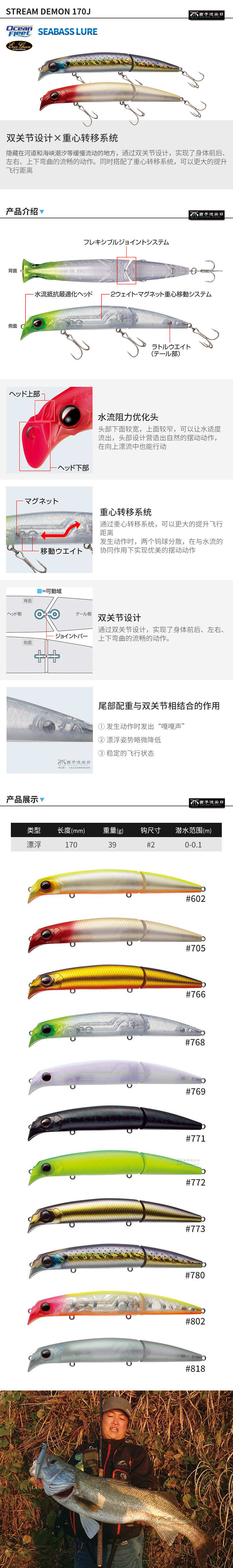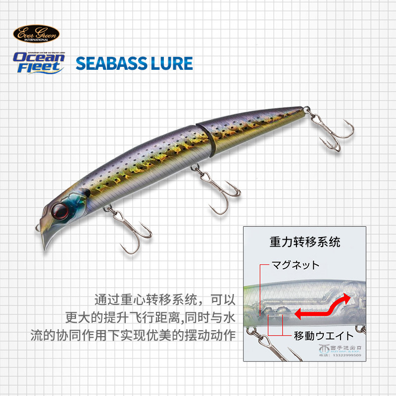Япония импортирован, например, мино двойные рыбы, конусные дрожащие дрожащие качели медленно тонущие морские окуни 39 граммов сломанного тела, азиатская фальшивая приманка Каредолу