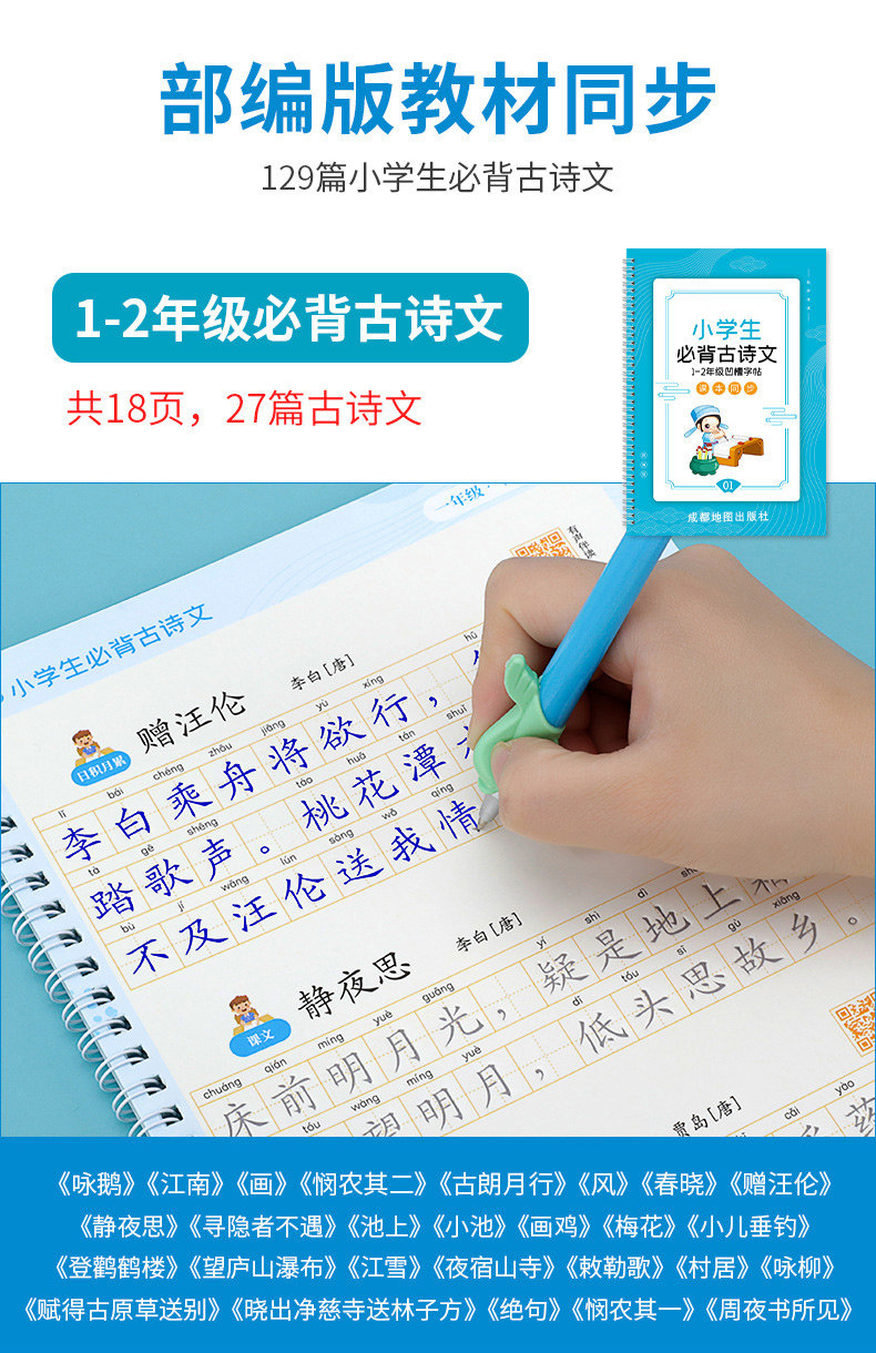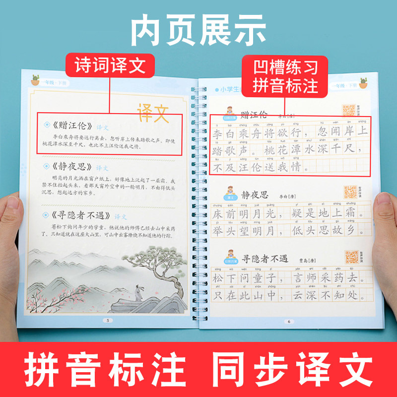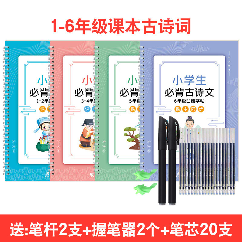 Древняя поэзия для школьников, каллиграфия, тетрадь, ручка для письма, именная наклейка, Танская поэзия, детская практика, тренируйтесь каждый день, 1-6 года