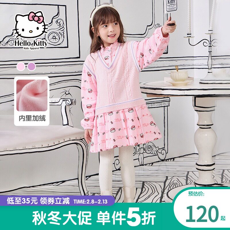 Hello Kitty, весенний флисовый комплект, платье, детская одежда, подходит для подростков