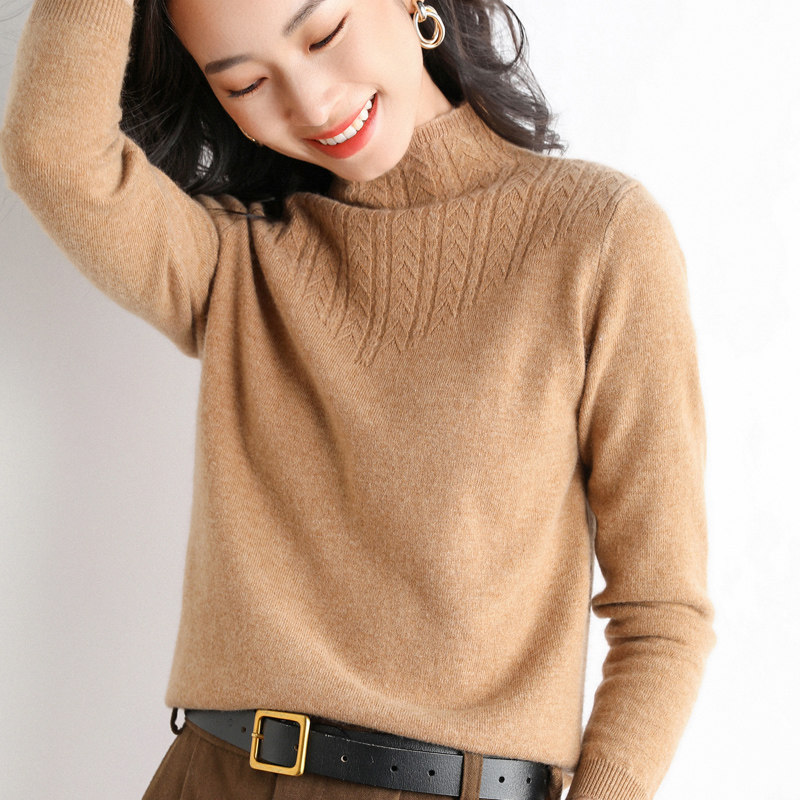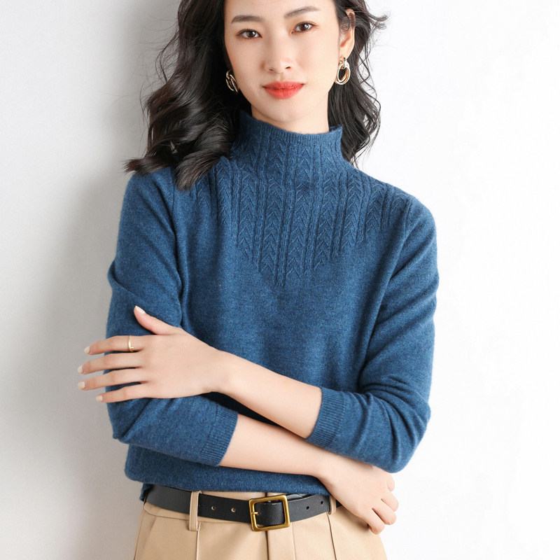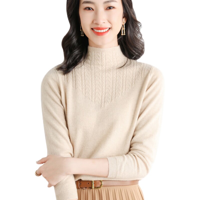 Демисезонный шерстяной свитер, трикотажный короткий лонгслив, высокий воротник, в корейском стиле, городской стиль