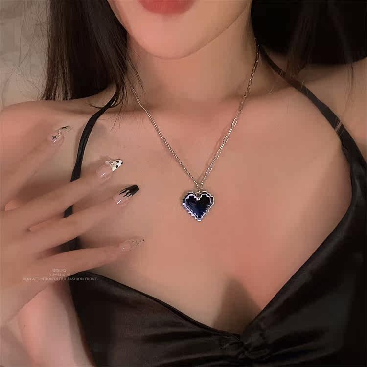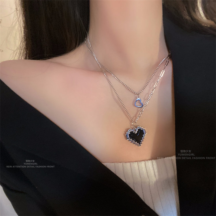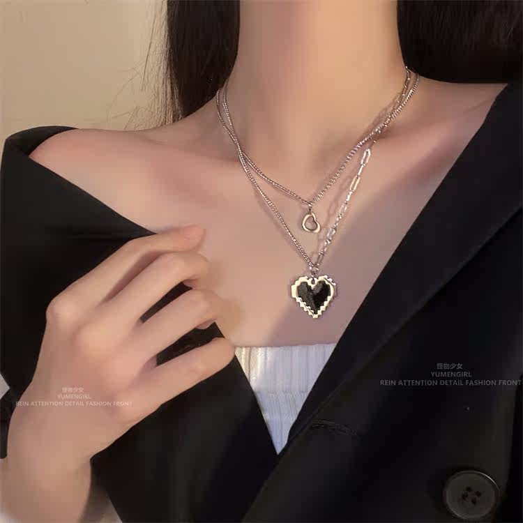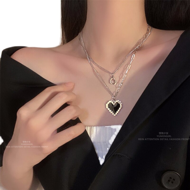 Черная мозаика, двухэтажное ожерелье, подвеска, свитер в виде сердечка, монстрик