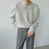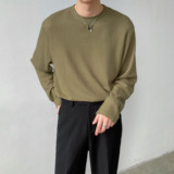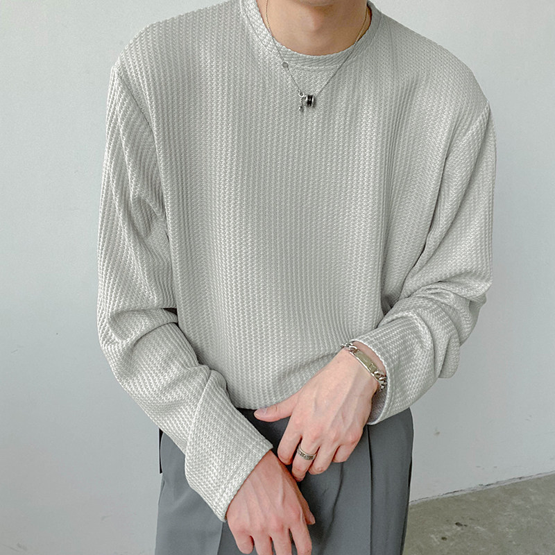 Мужской осенний трикотажный трендовый лонгслив с круглым воротником, в корейском стиле