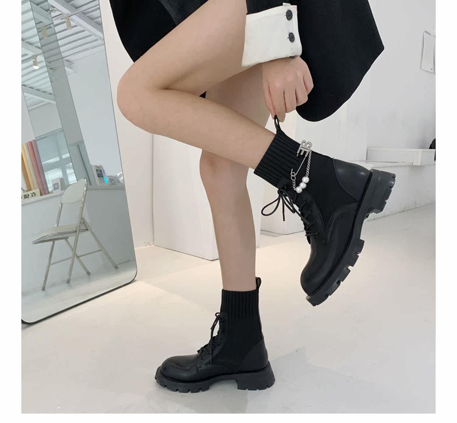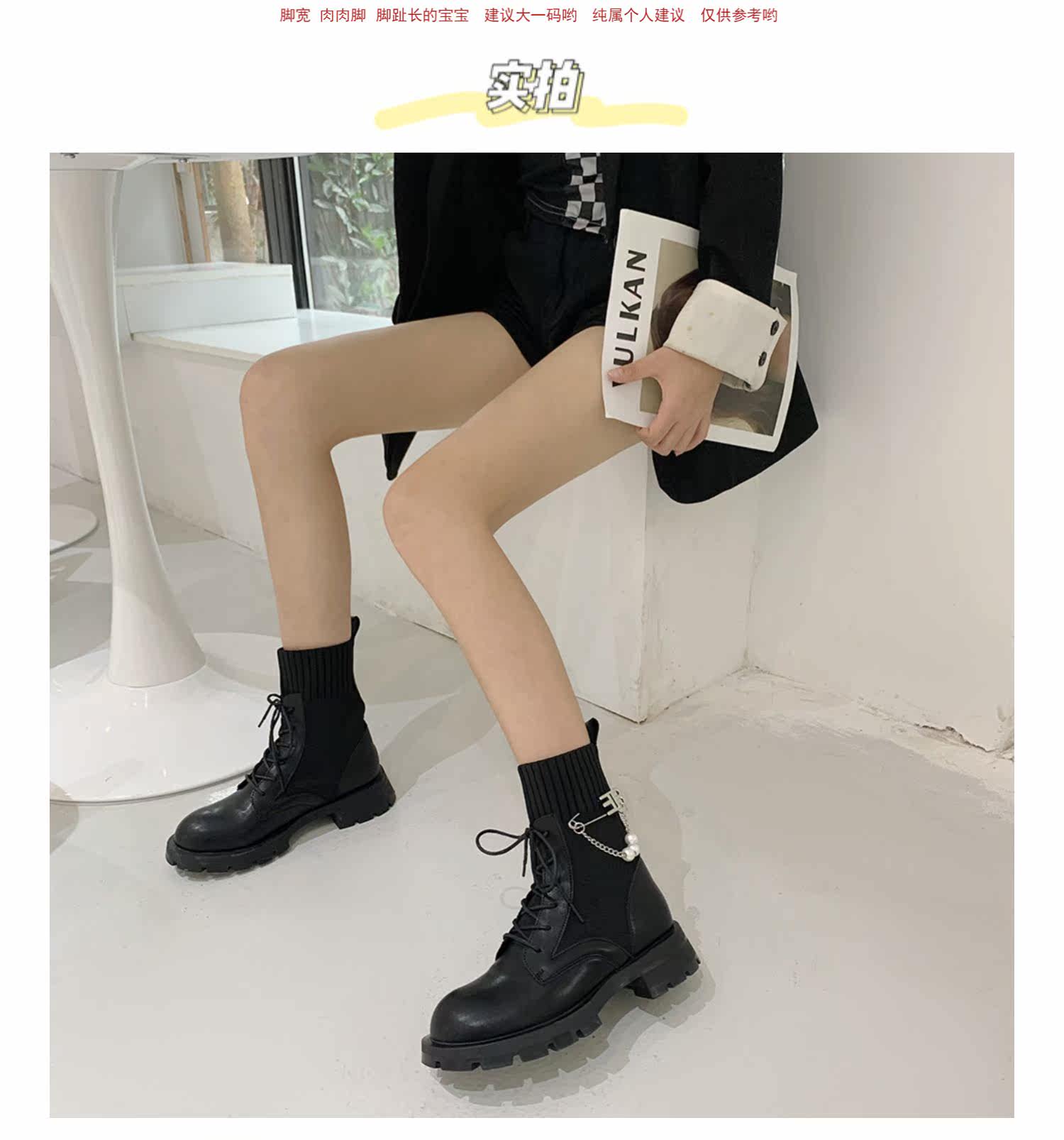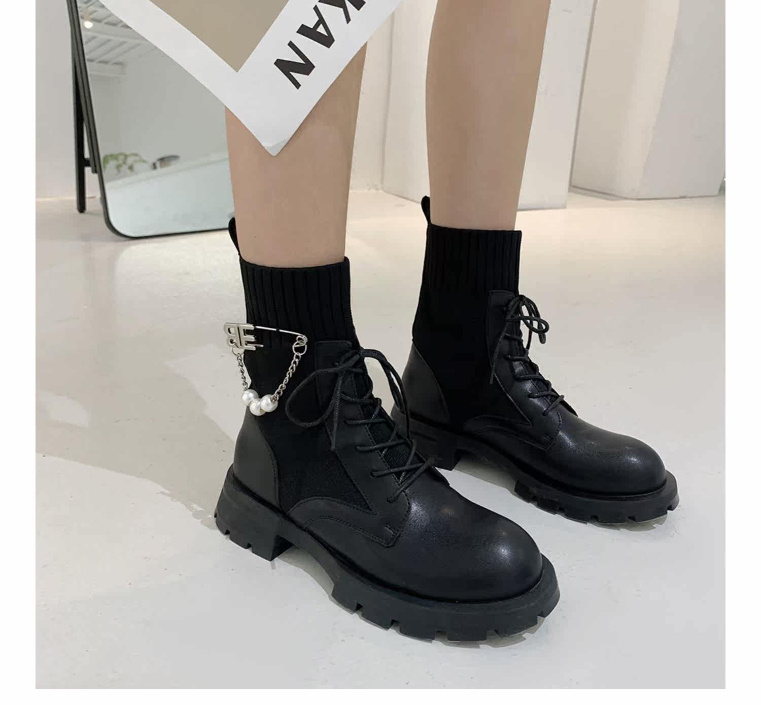 Martens, Tide, трикотажные черные короткие сапоги в английском стиле, в корейском стиле, 2021 года, в британском стиле