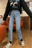 Осенние базовые штаны, ретро синие джинсы, высокая талия, свободный прямой крой
