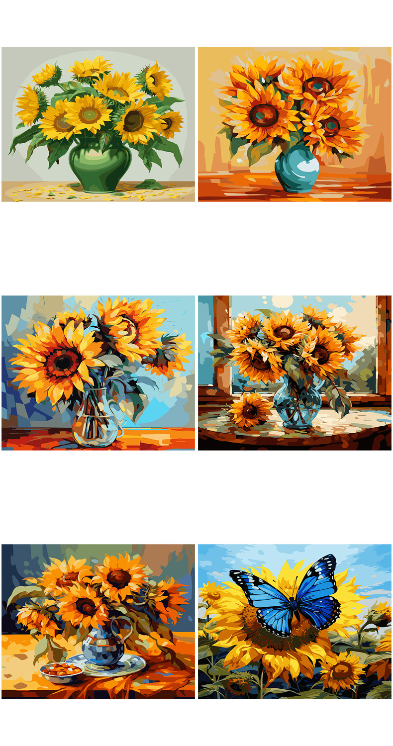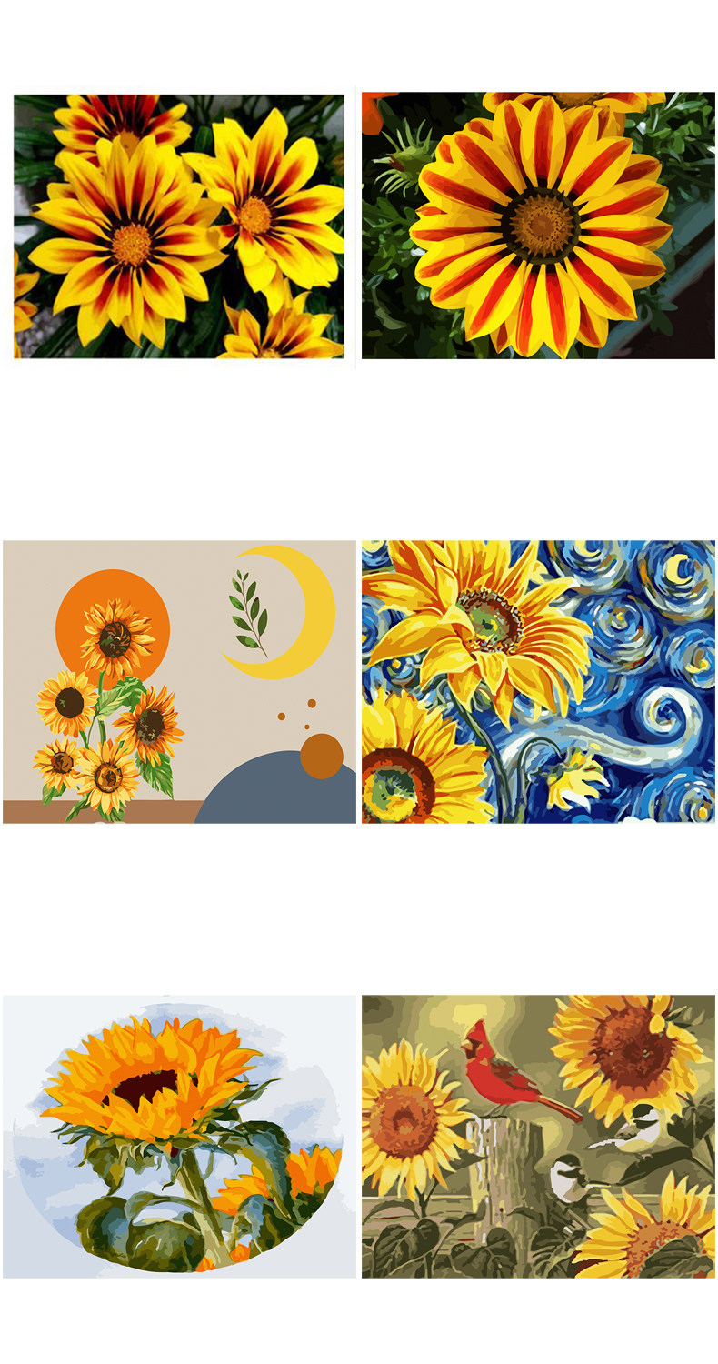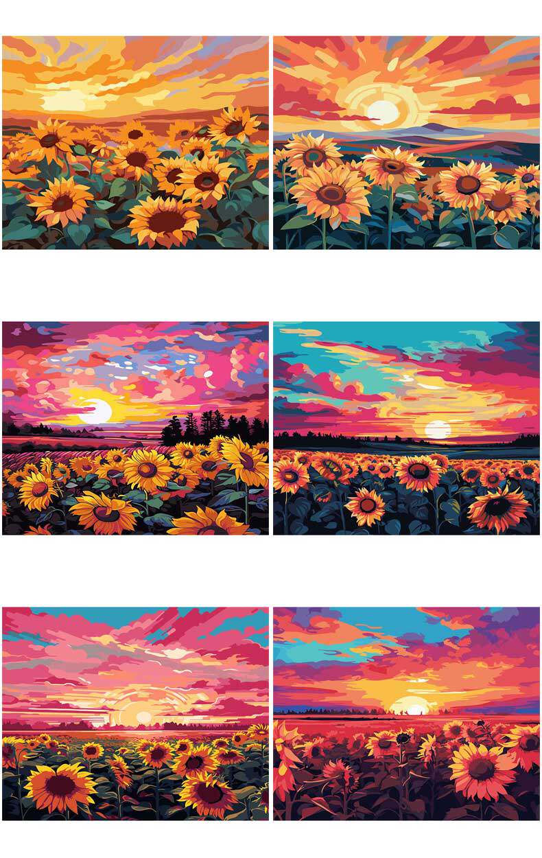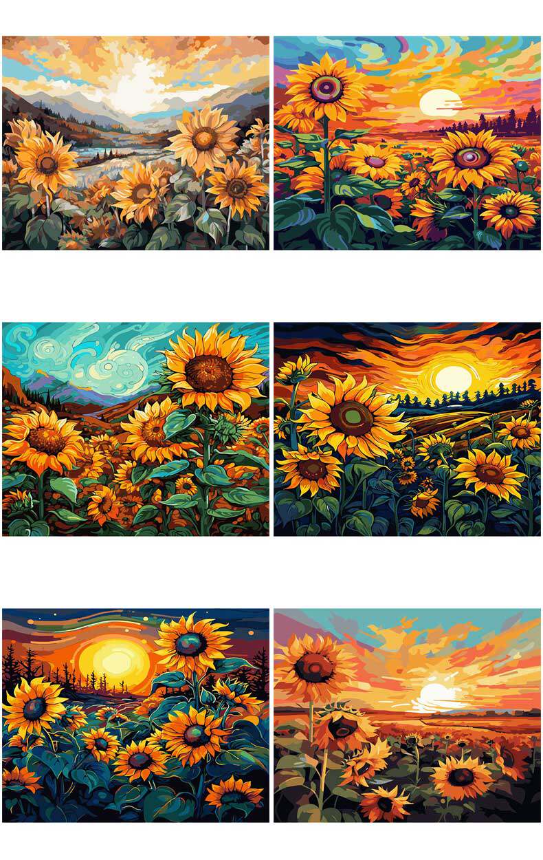 DIY Цифровые декоративные картины маслом заполнены раскраскими материалами на подсолнелях, цветах, закате, закате, закатом, закатом, закатом, закатом, закатом, закатом, закатом