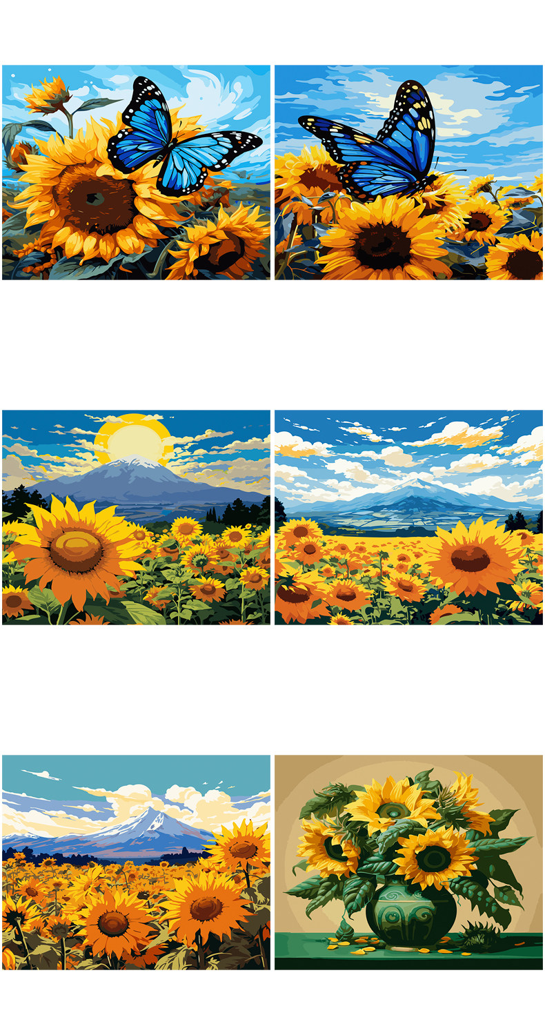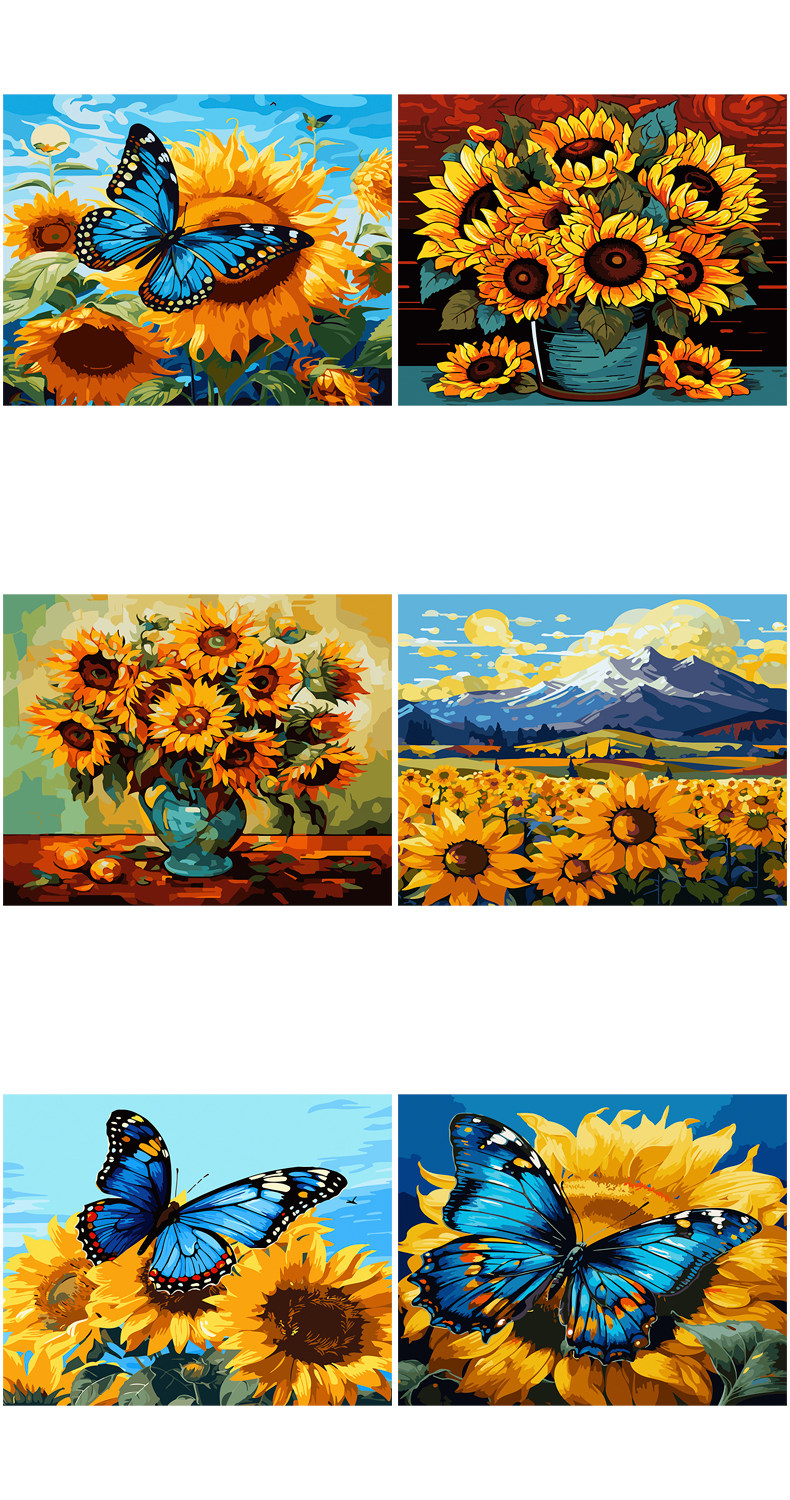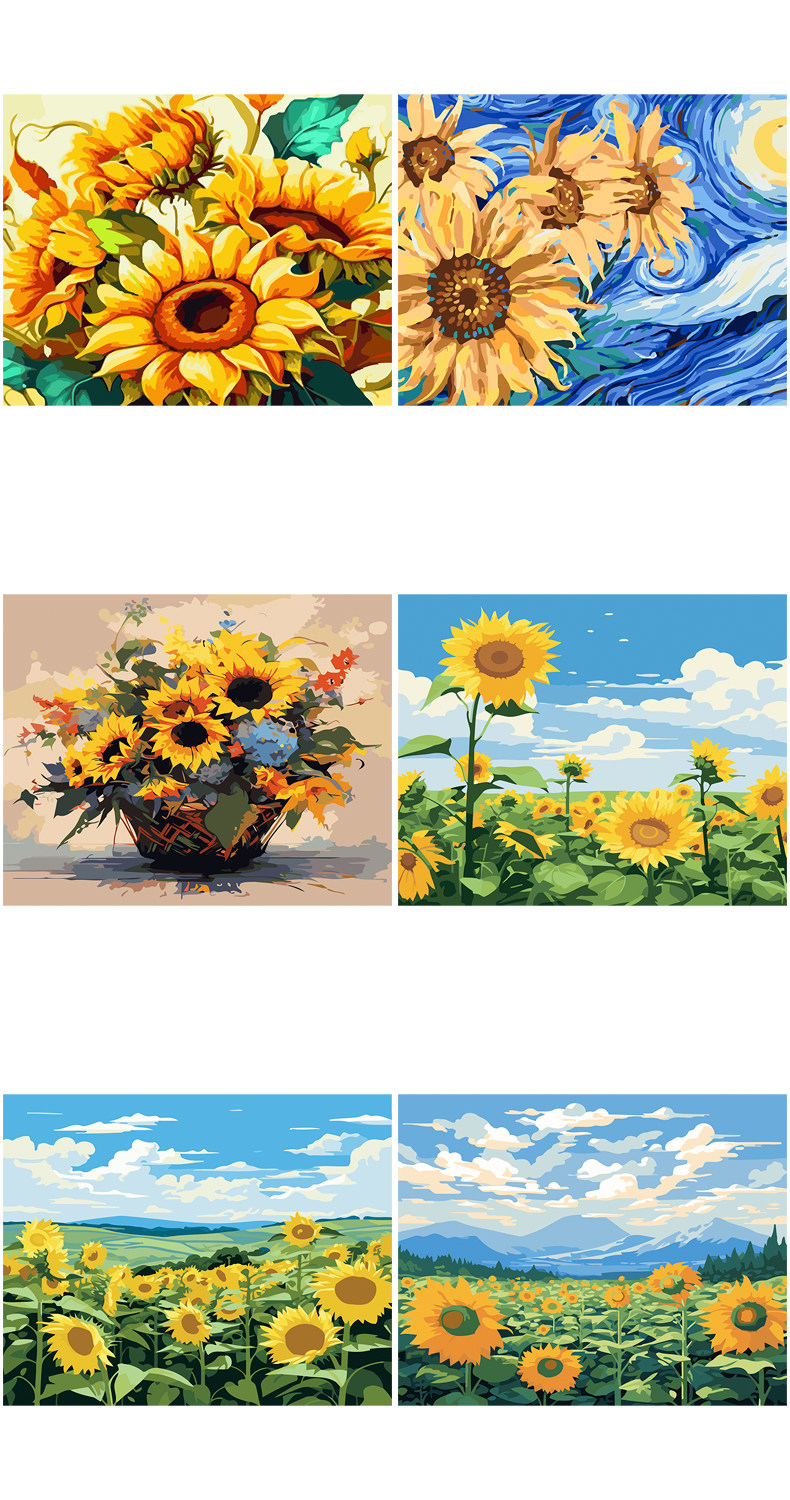 DIY Цифровые декоративные картины маслом заполнены раскраскими материалами на подсолнелях, цветах, закате, закате, закатом, закатом, закатом, закатом, закатом, закатом, закатом