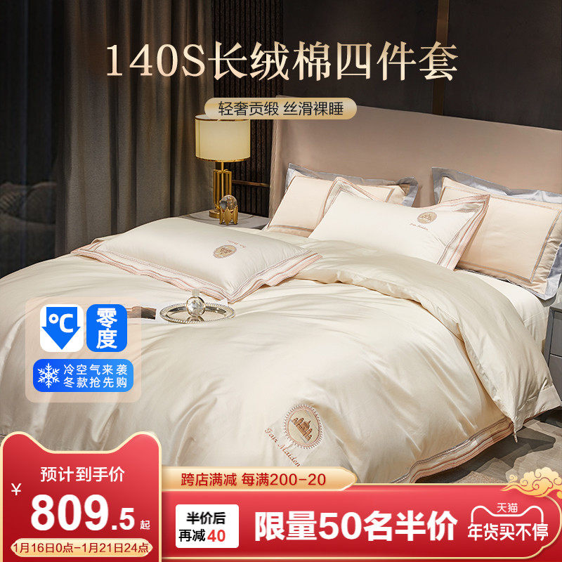 Хлопковый комплект, простыня, зимний пододеяльник, 140 шт, 4 предмета, легкий роскошный стиль, изысканный стиль, постельные принадлежности