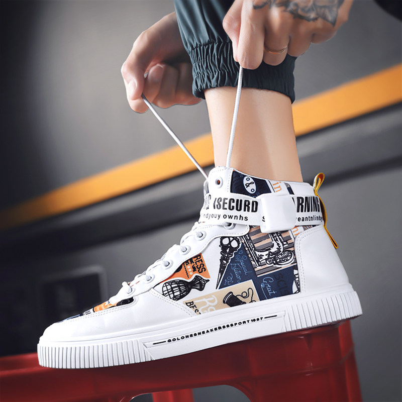 Летняя обувь, высокие тканевые дышащие универсальные белые спортивные кроссовки