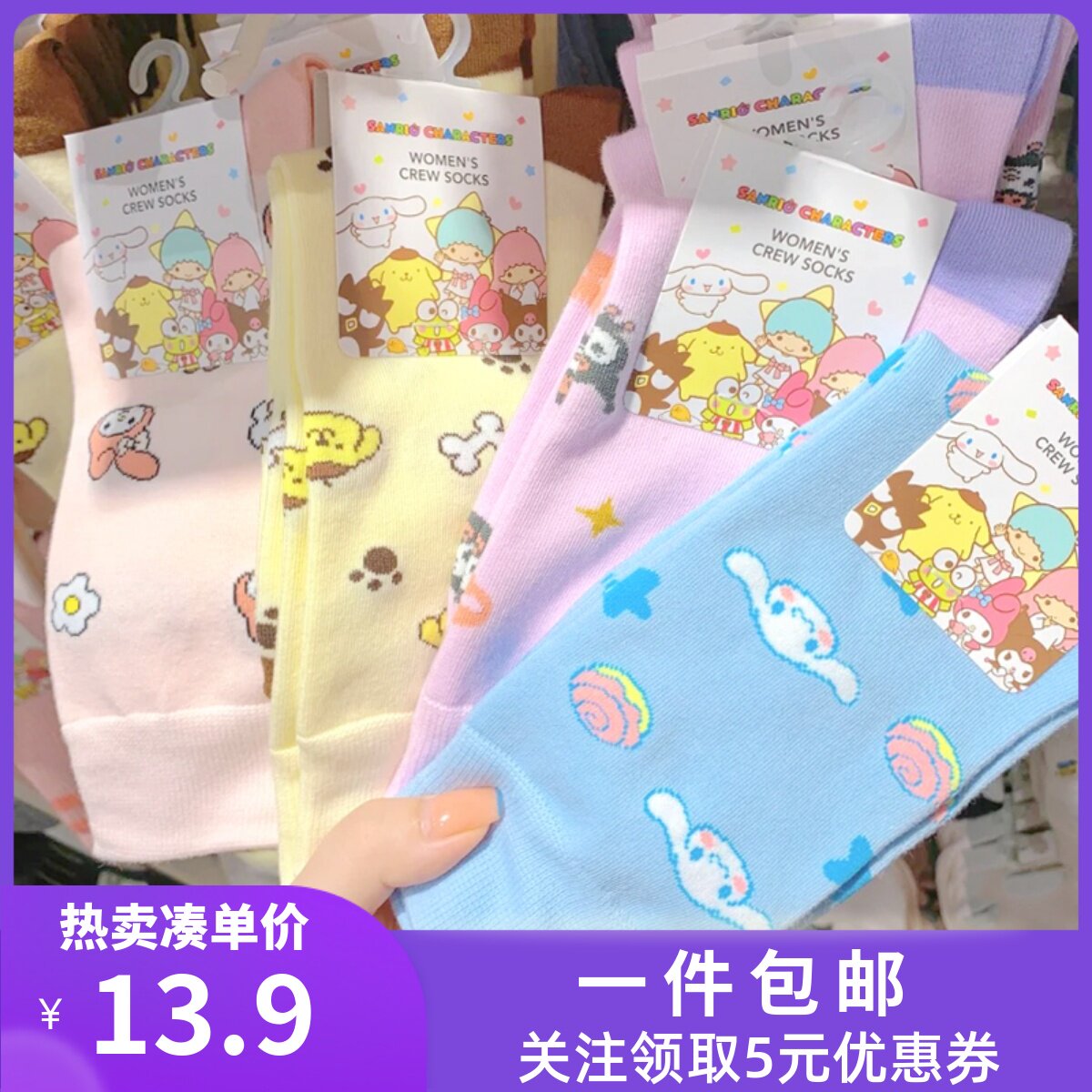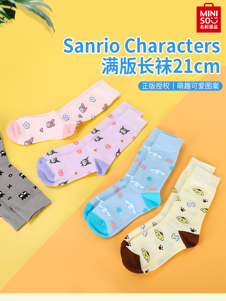 Miniso Mingyin Youpin Sanrio Yuliang Dog Melati Полная версия носков Летняя осень Симпатичные носки 21 см. Женщина