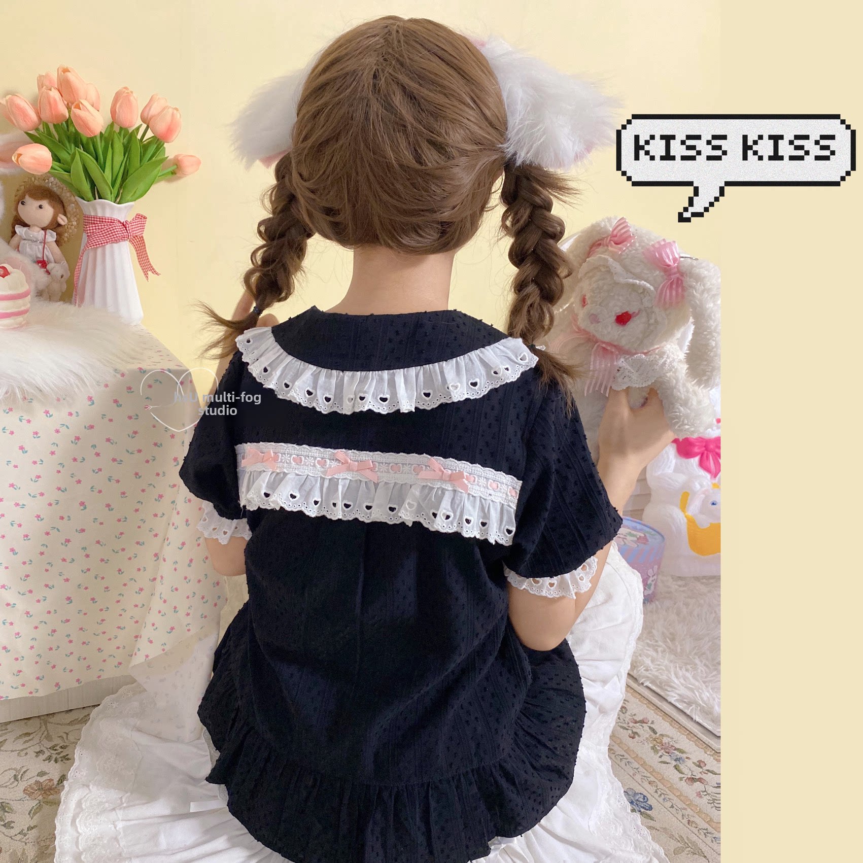 Хлопковая милая рубашка, стиль Лолита, короткий рукав