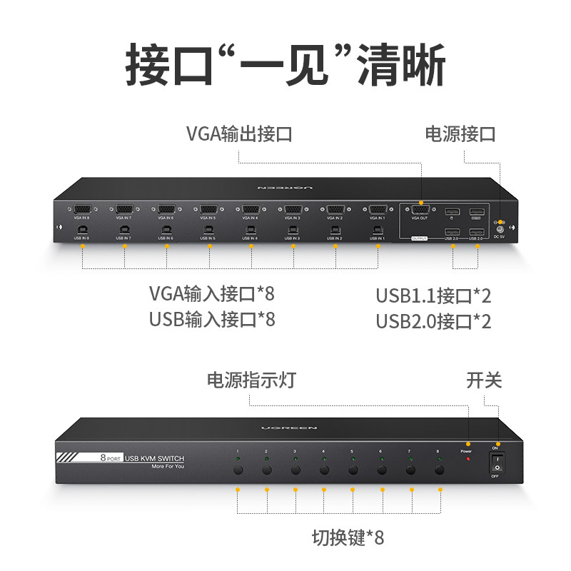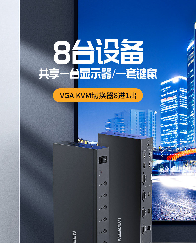 Зеленый Union KVM Switch 8 Port VGA Eight -У -УТ -УТ -ВЕТАРИЧЕСКИЙ ПЕРЕДЕЛИТЕЛЬНЫЙ МОТО МОНТЕРЗИ КОМПЬЮТЕРСКИЙ КЛАДИВНА