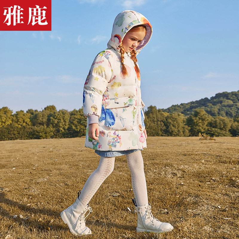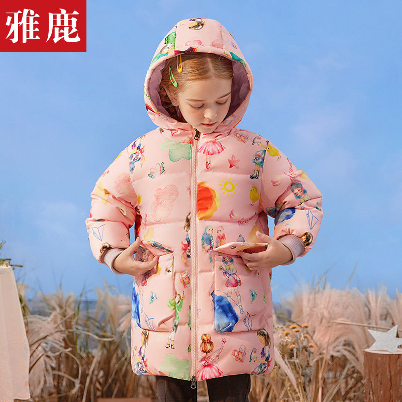 Детский длинный демисезонный пуховик, детская одежда, коллекция 2022, средней длины, подходит для подростков, цветочный принт, в западном стиле