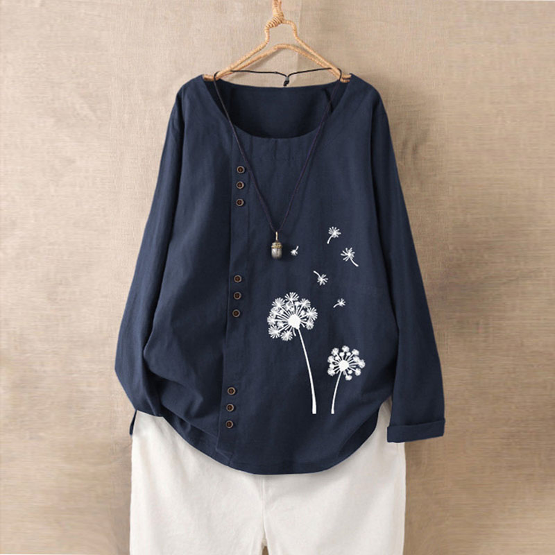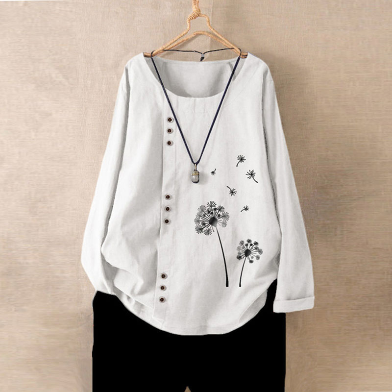Осенняя рубашка, футболка, из хлопка и льна, свободный крой, размер