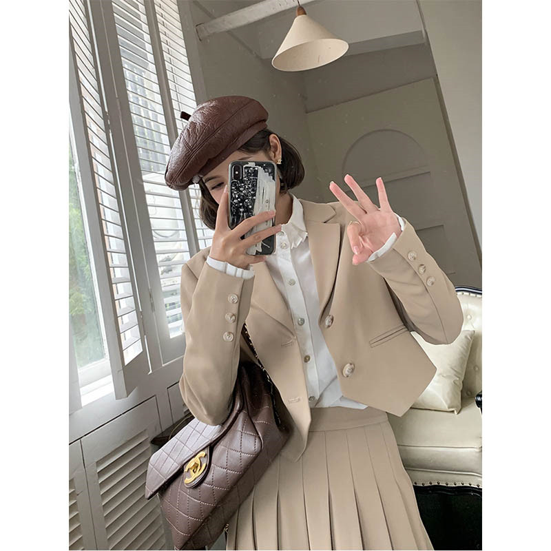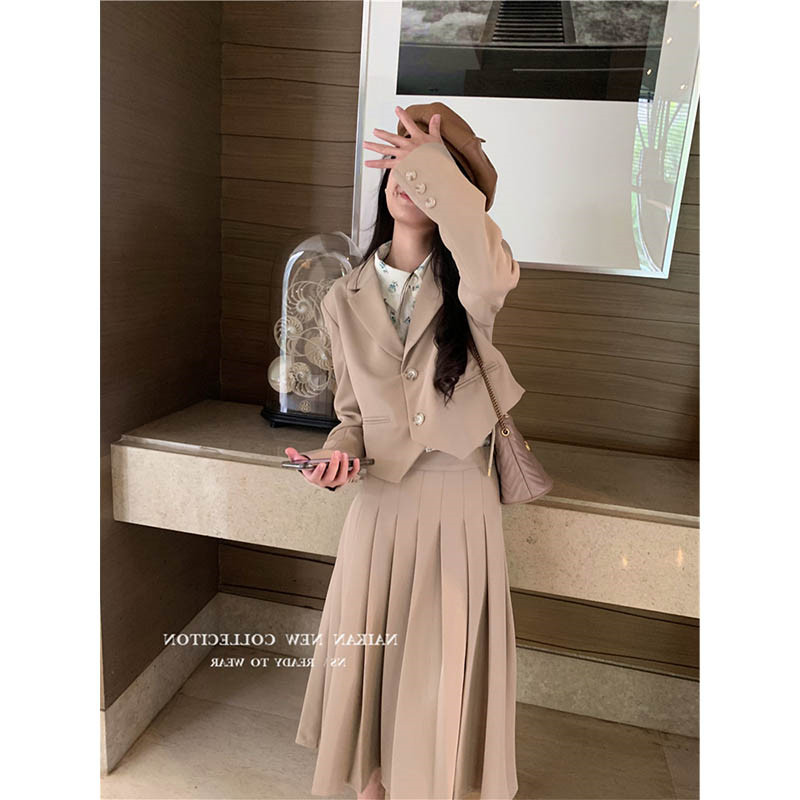 Осенний ретро модный пиджак классического кроя, комплект, юбка в складку, популярно в интернете