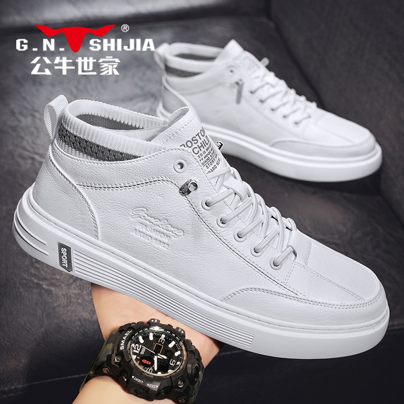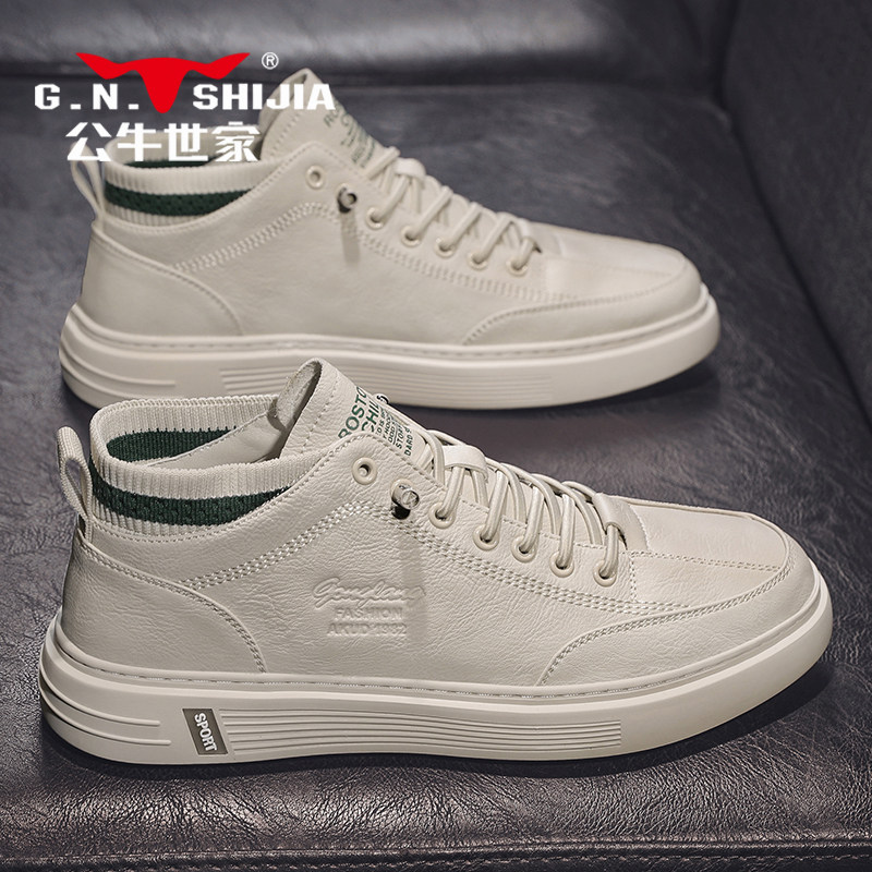Мужская демисезонная высокая обувь для кожаной обуви, трендовые кроссовки для отдыха, премиум класс, из натуральной кожи