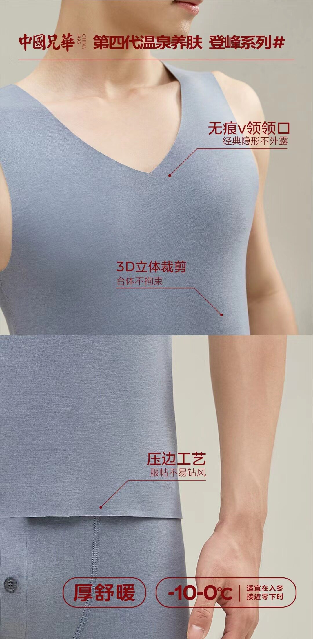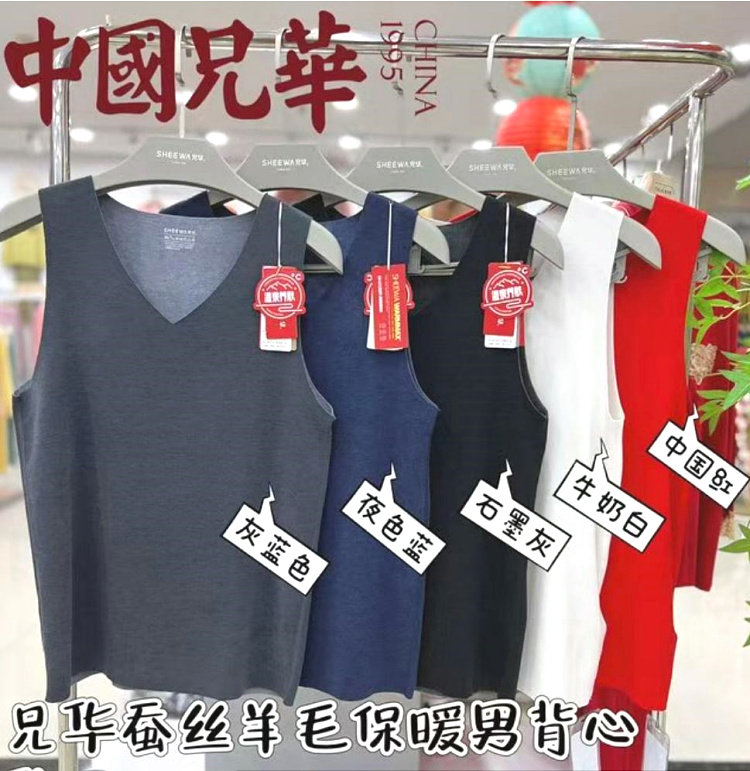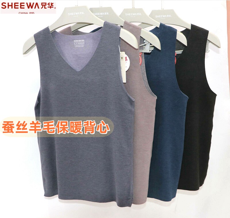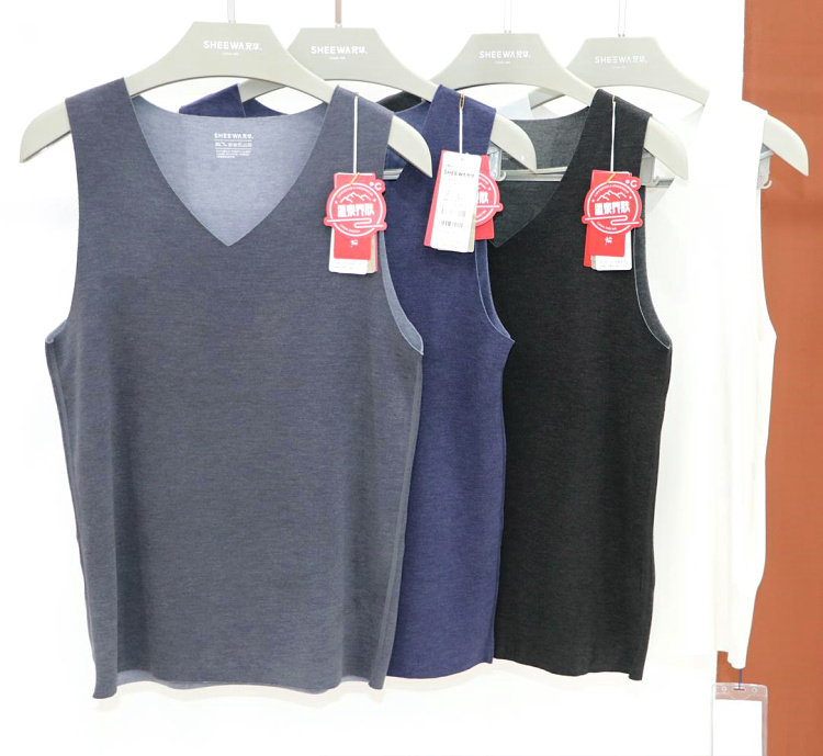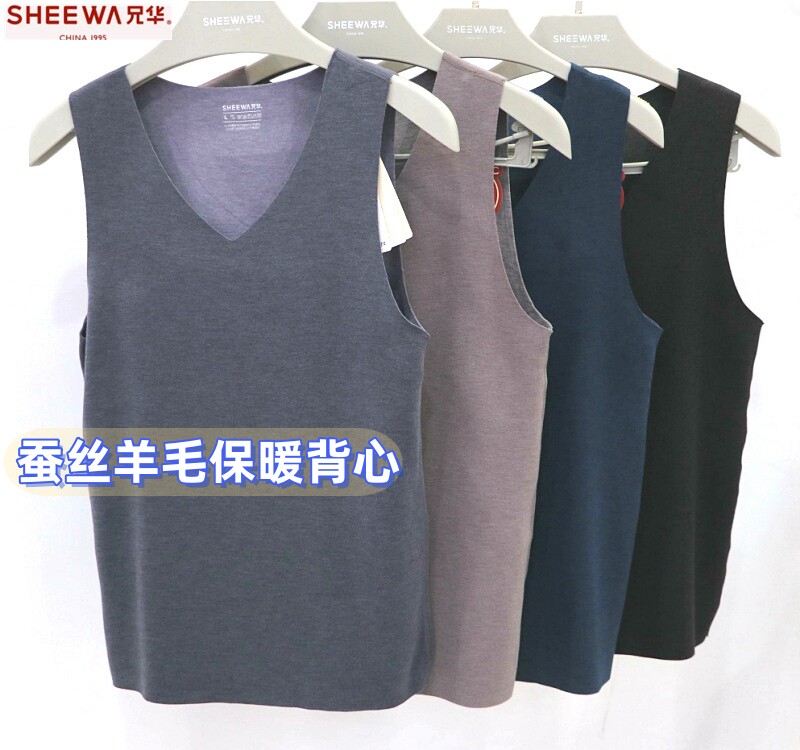 兄华 Удерживающий тепло жилет, шерстяное базовое нижнее белье, V-образный вырез, увеличенная толщина