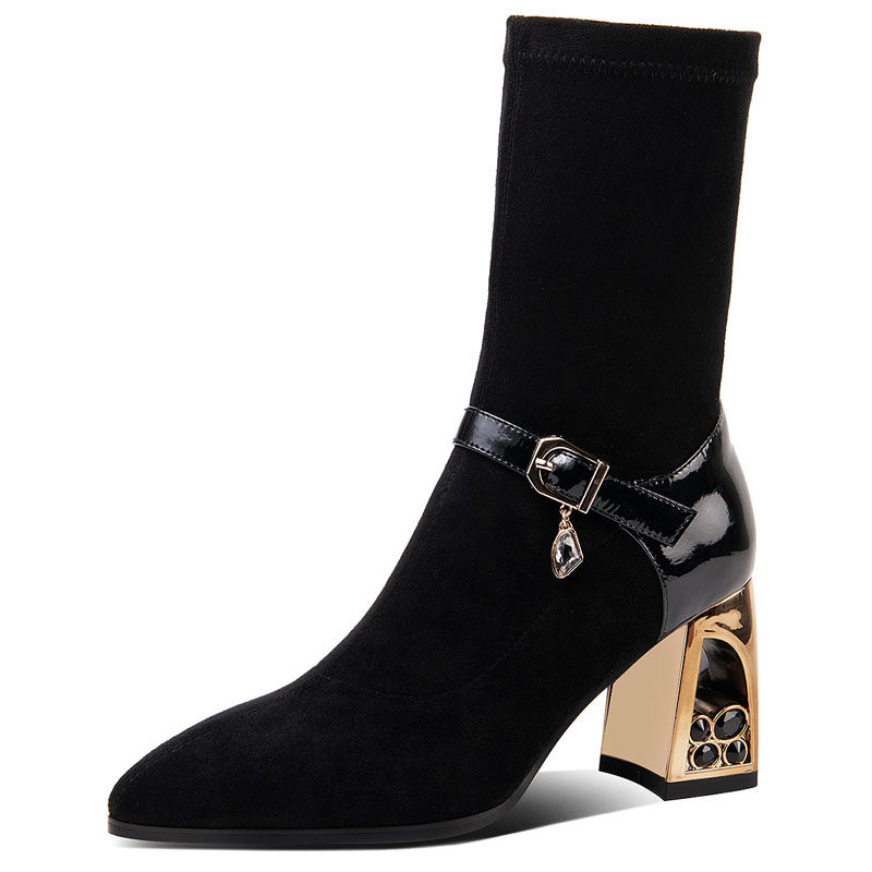 Ботинки, демисезонные эластичные комфортные сапоги с заостренным носом, большой размер, средней длины