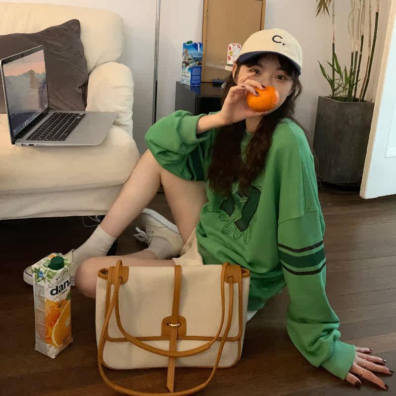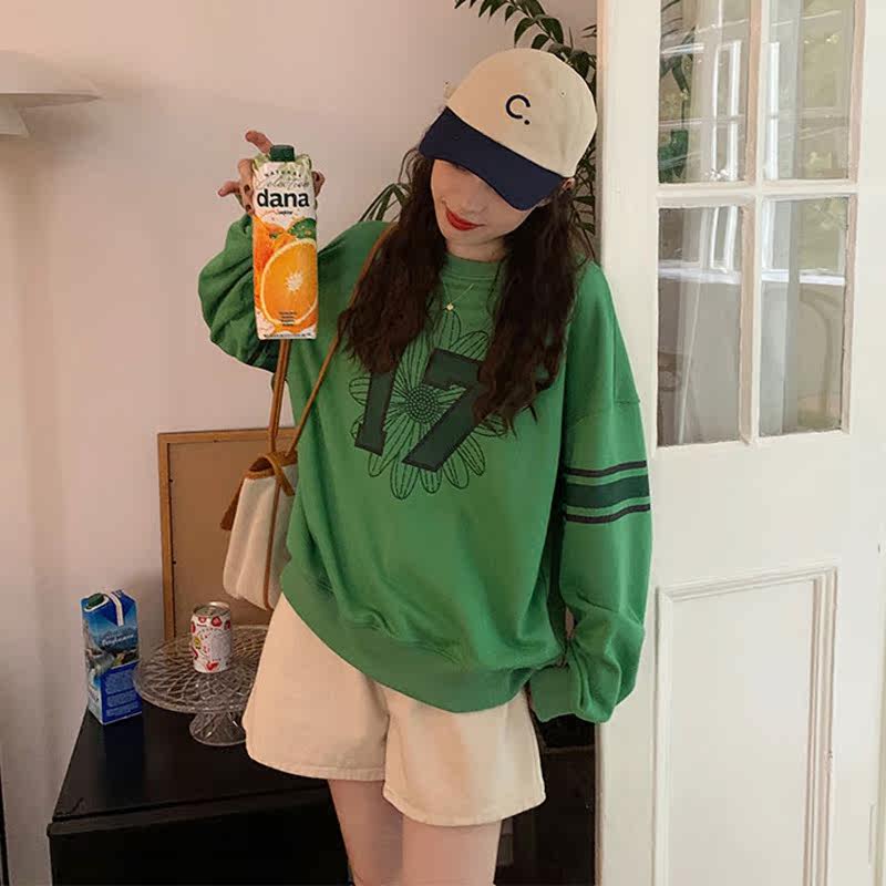 Осенняя зеленая дизайнерская толстовка, тренд сезона, оверсайз, в западном стиле