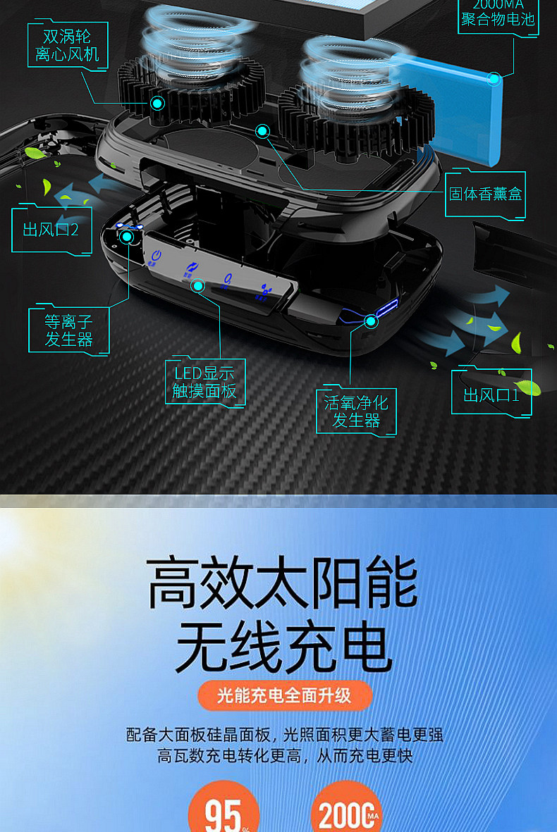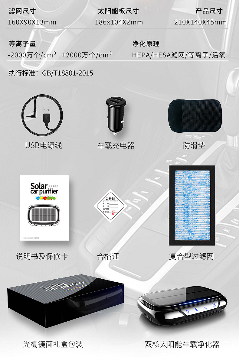 Очистка воздуха солнечного автомобиля подходит для транспортного средства просо с ионами озона, чтобы стерилизовать формальдегид