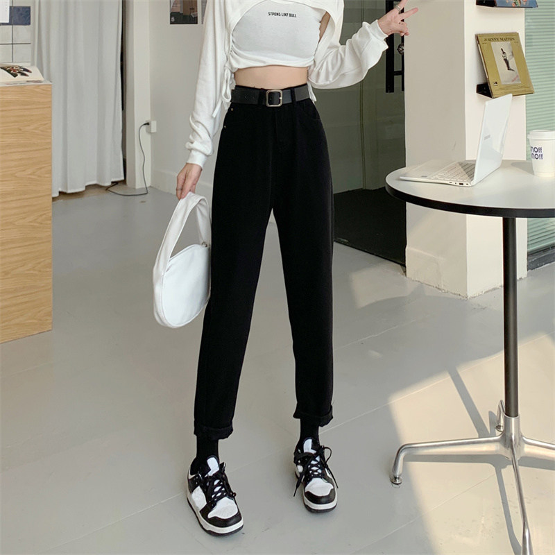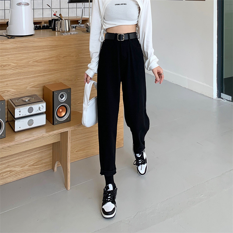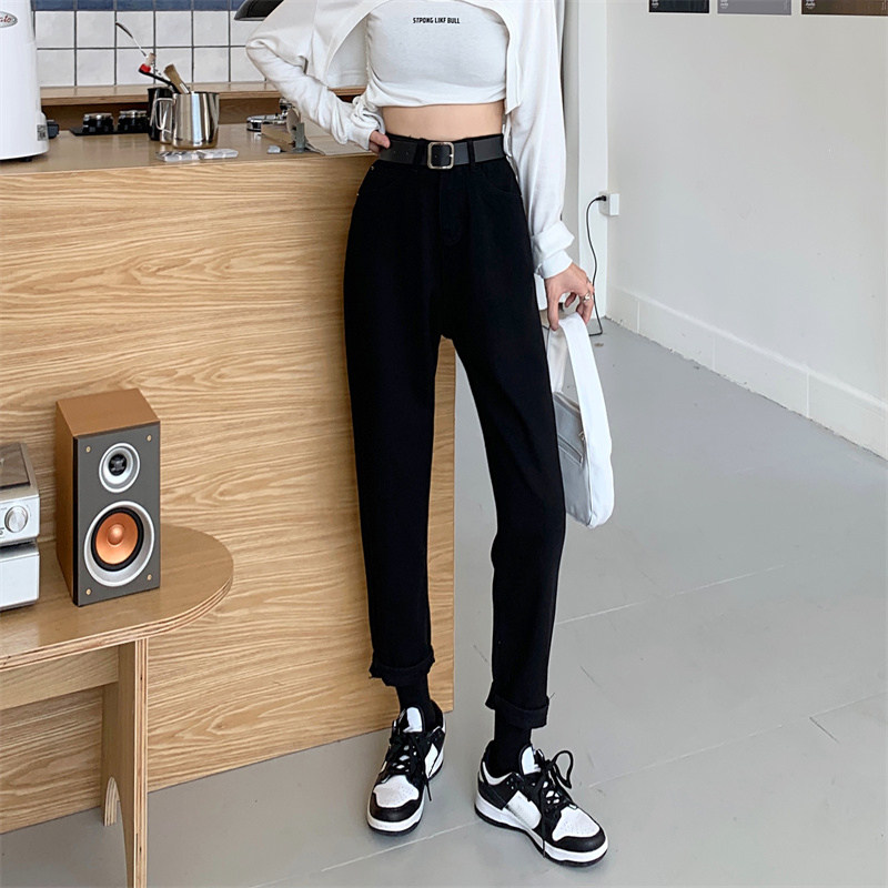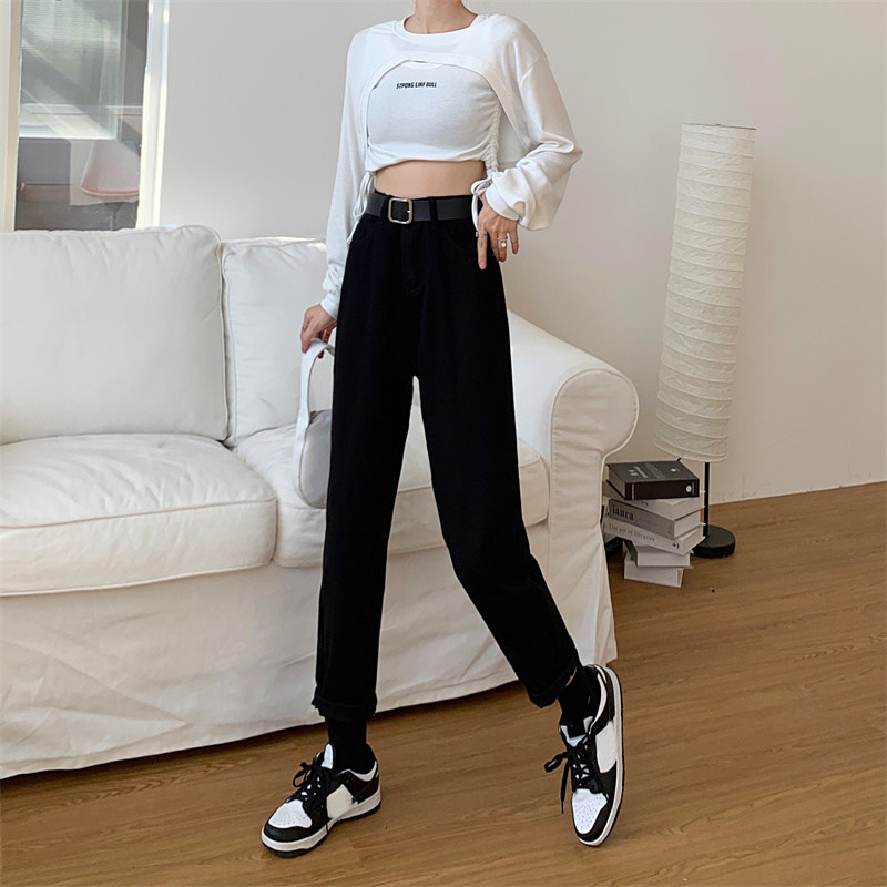 Джинсы, весенние приталенные штаны, высокая талия, подходит для подростков, свободный прямой крой