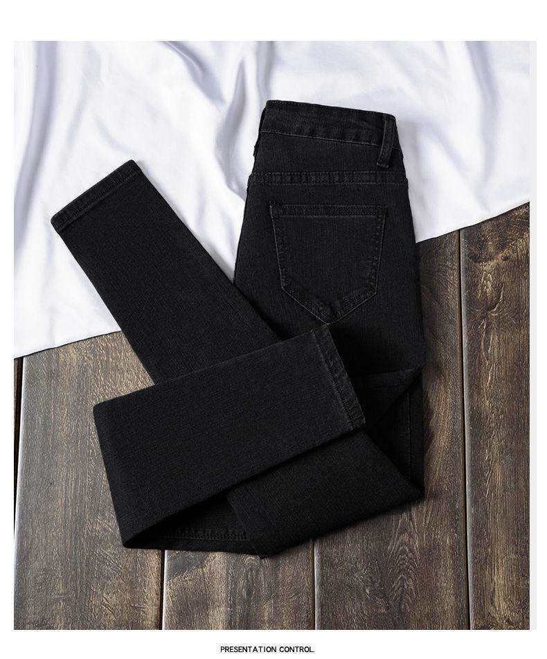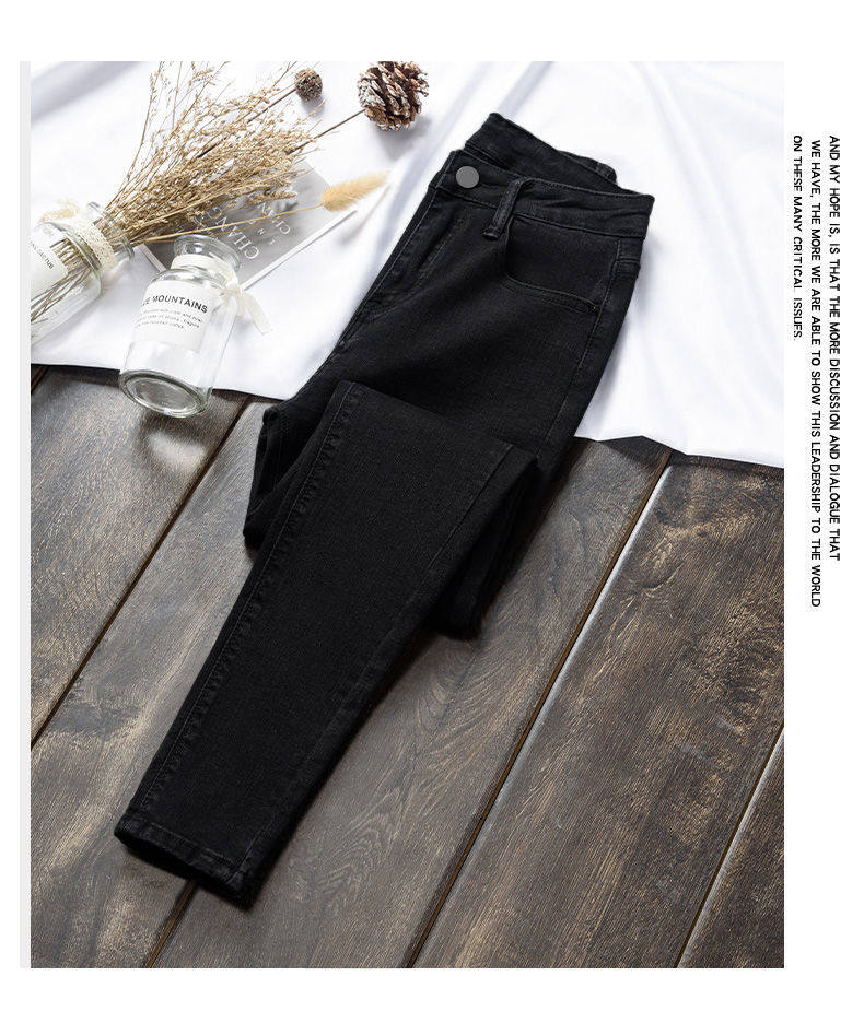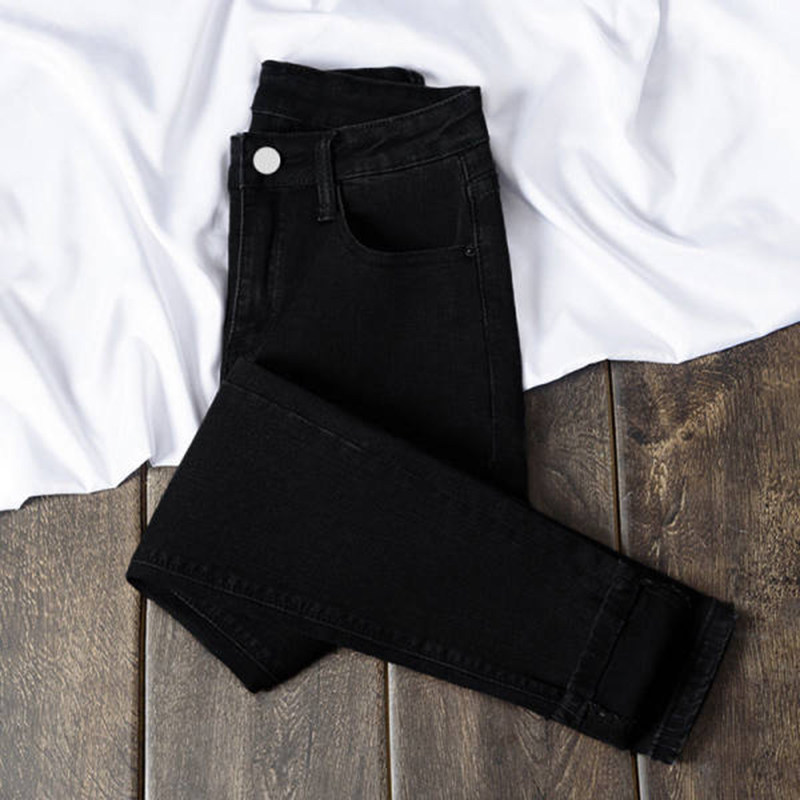 Ретро джинсы, осенние штаны, приталенный универсальный черный карандаш, коллекция 2021, высокая талия