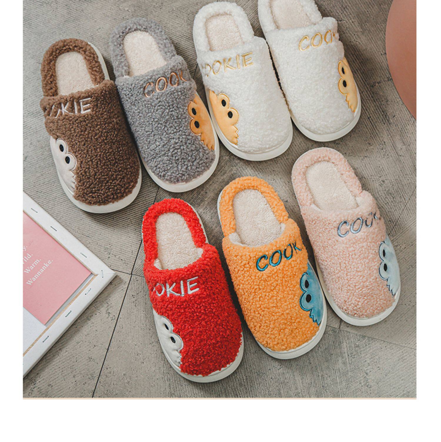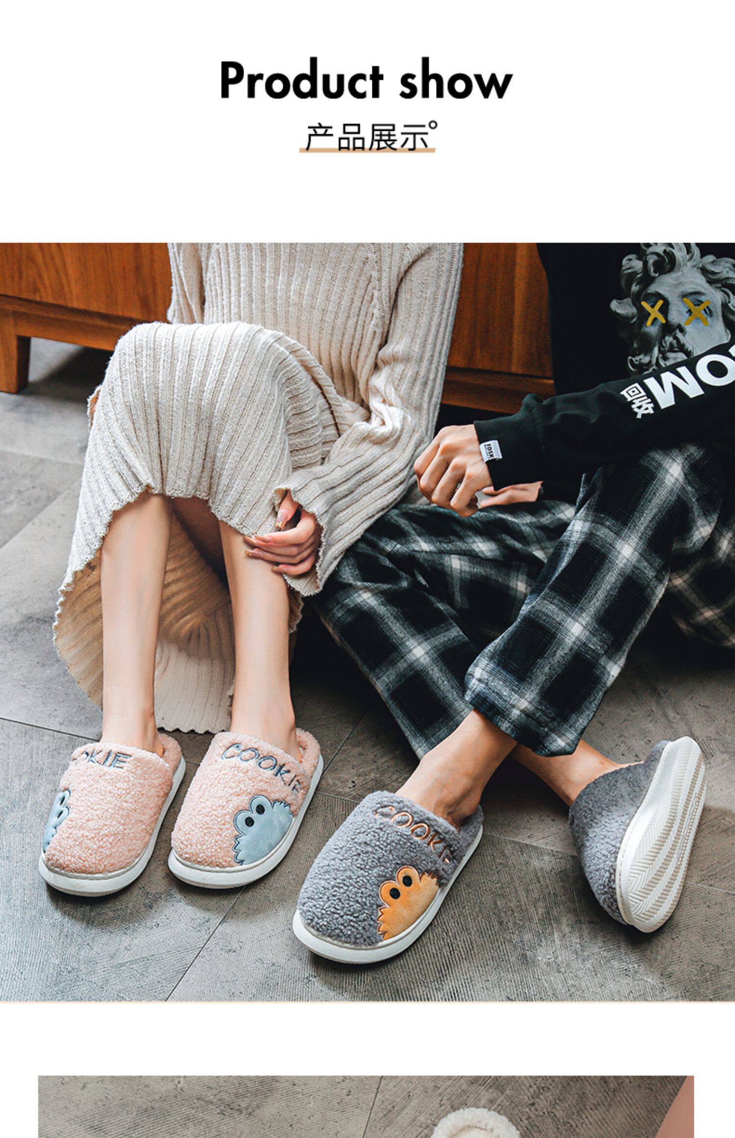 Зимние милые мультяшные удерживающие тепло тапочки, для влюбленных