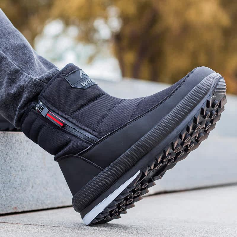 Зимние сапоги, нескользящая утепленная высокая обувь с молнией, большой размер