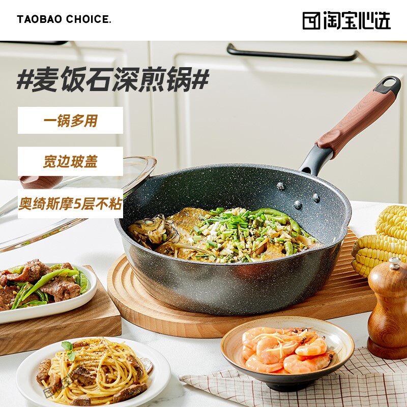Черная пшеничная рисовая камень не липкая жареная сковорода 26 см.