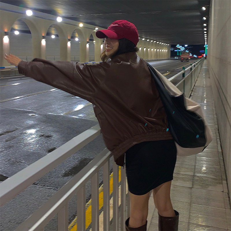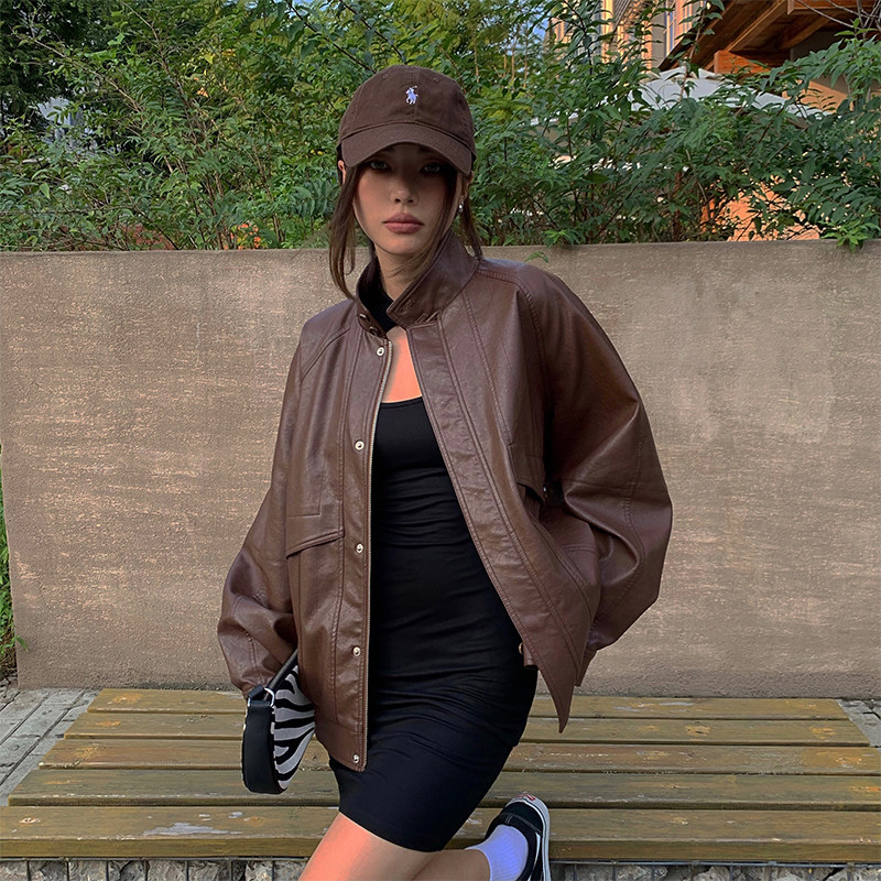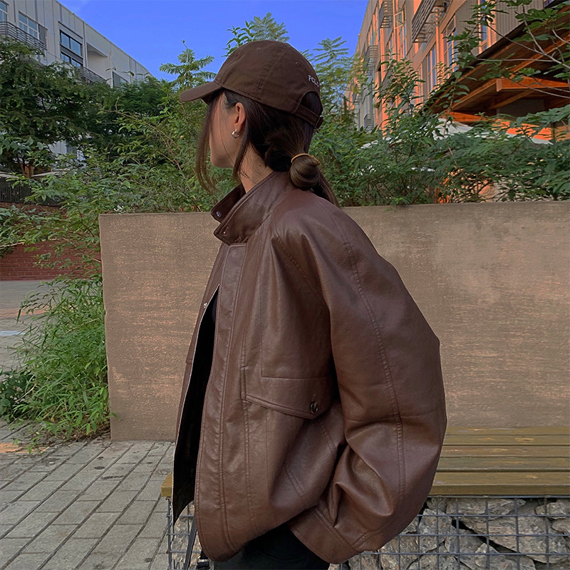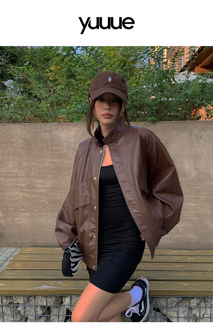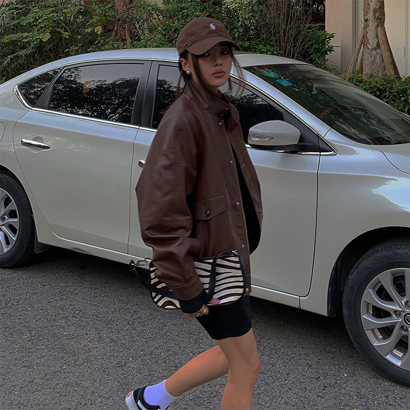 yuuue Коричневая весенняя ретро брендовая куртка, свободный крой, европейский стиль