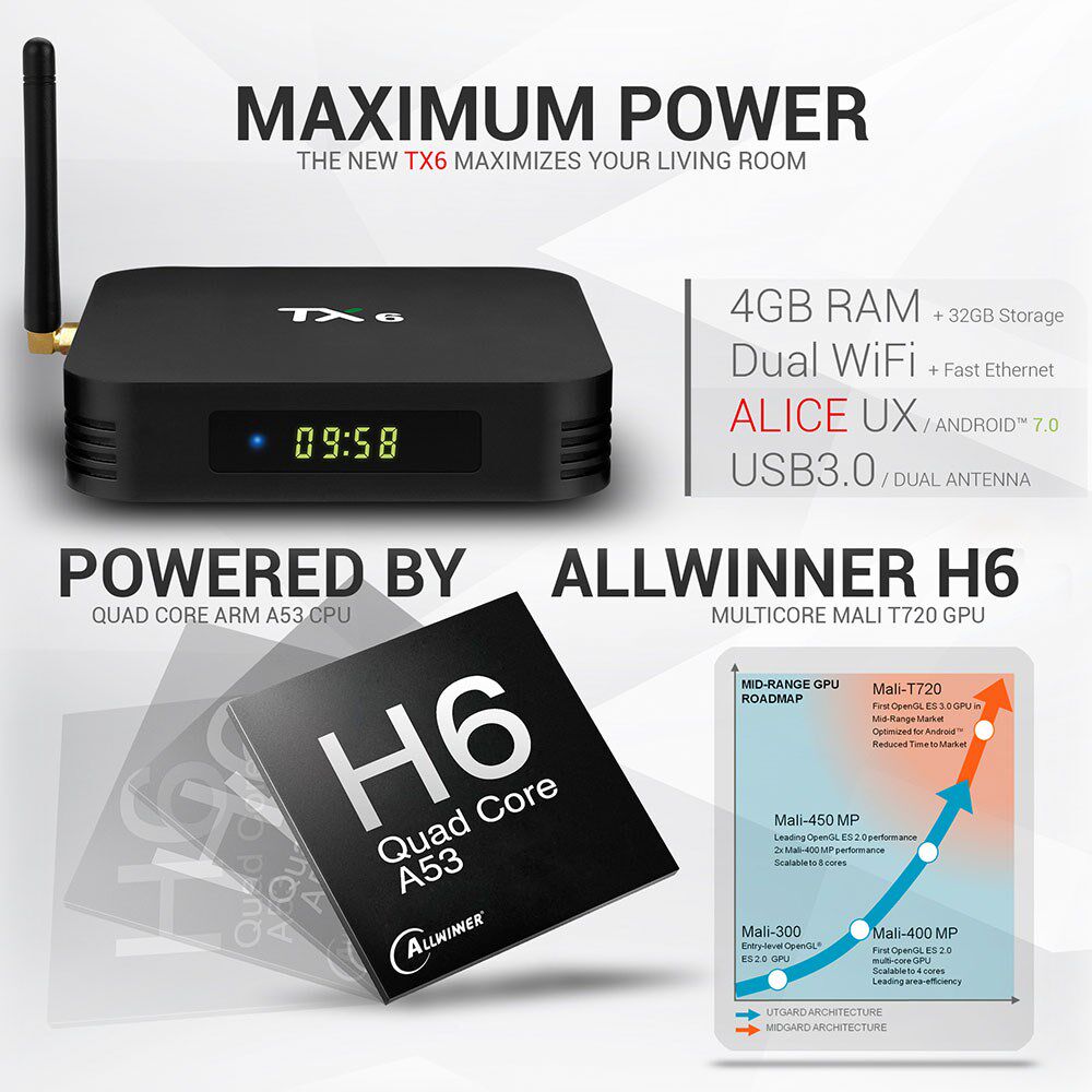 Tanix TX6 Smart TV Box Android 9.0 Quad Core Arm Cortex-A53