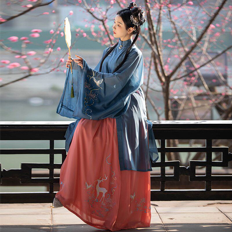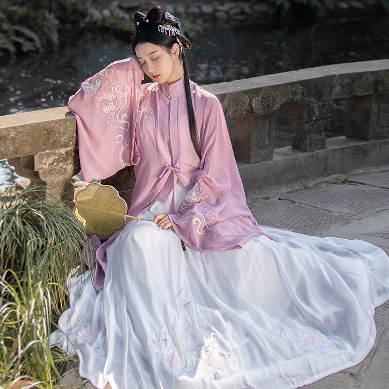 Оригинальное ханьфу, летняя юбка, с вышивкой, плиссированная юбка