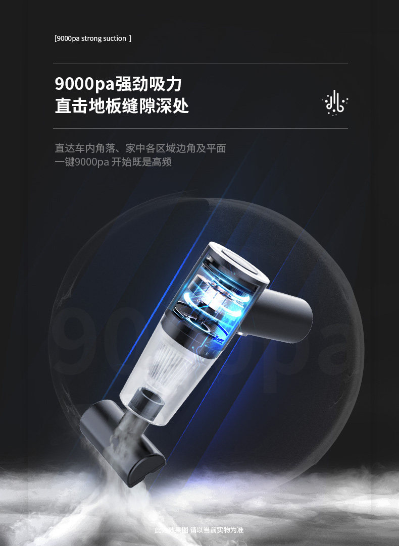 - "9000PA всасывающая сила" Черная беспроводная связь+широкий рот всасывание+элемент фильтра*2+база зарядки