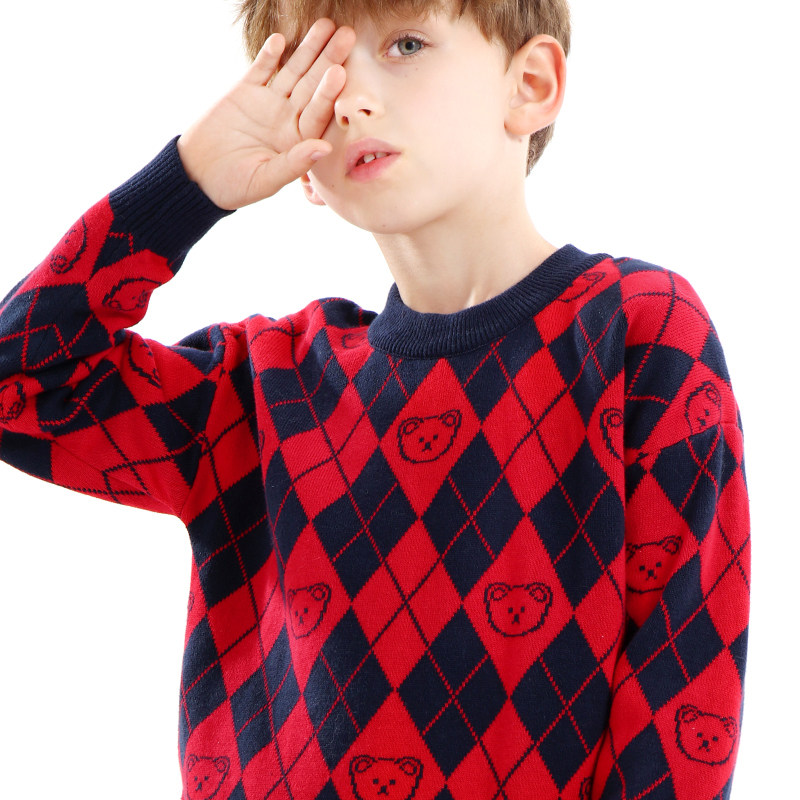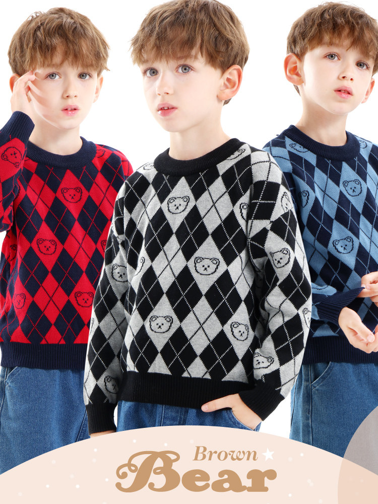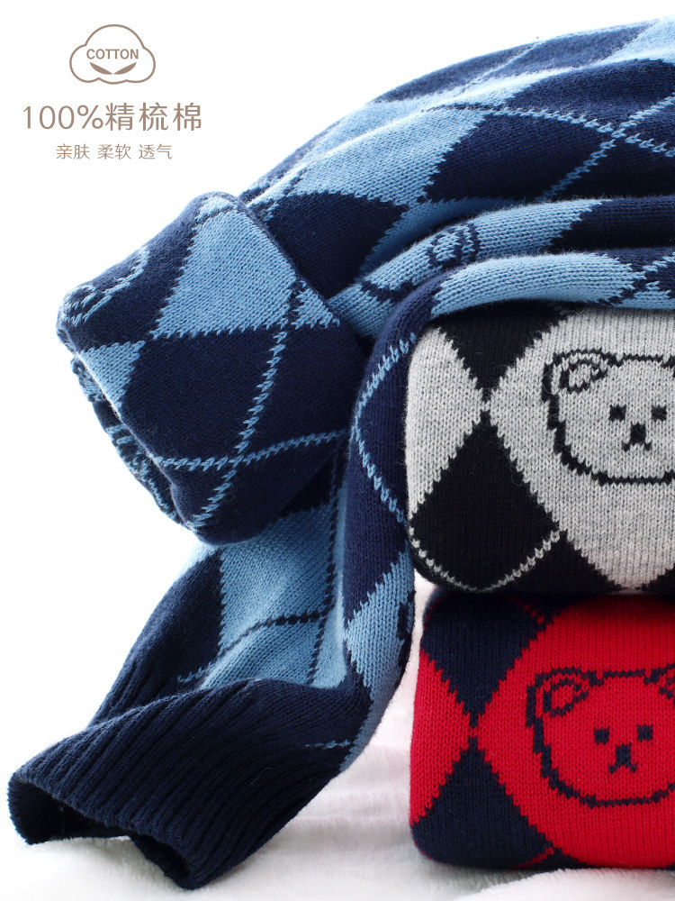 Детский трикотажный хлопковый удерживающий тепло шерстяной свитер для мальчиков, базовый приятный телу демисезонный пуховик, увеличенная толщина, подходит для подростков