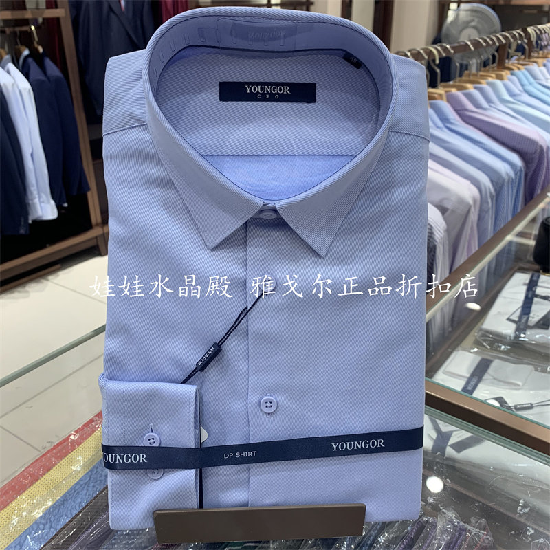 Counter 980 Новая деловая синяя рубашка Youngor's DP+ с длинными рукавами без глажки, слегка эластичная осень 129838IFY