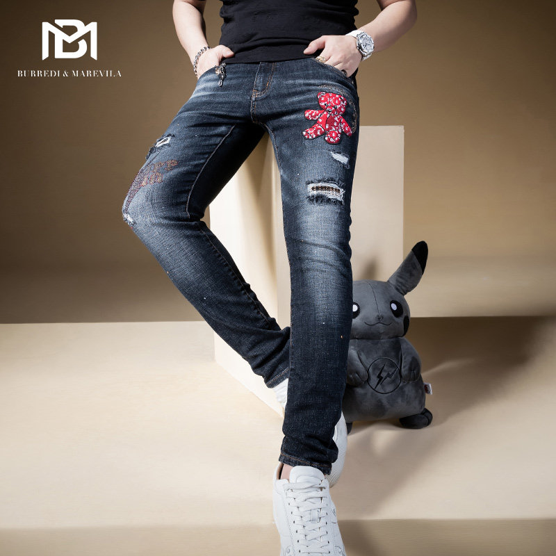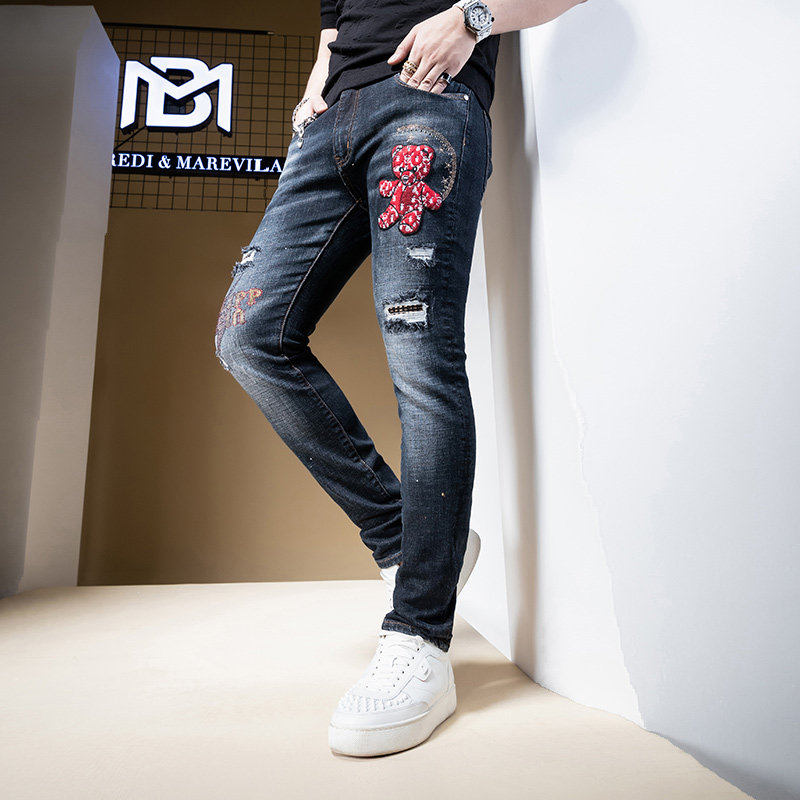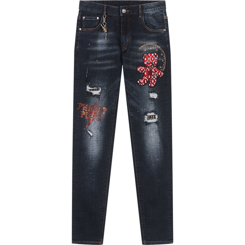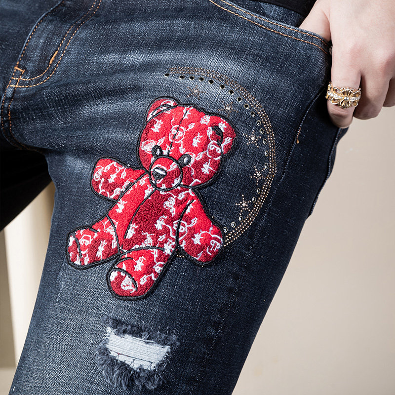 Джинсы, приталенные штаны, с медвежатами, с вышивкой, 2021 года