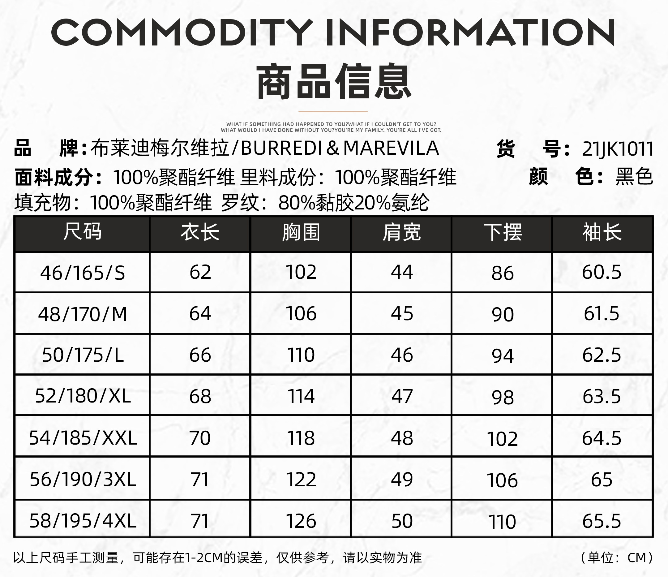 | Размер: | 46/S/165, 48/M/170, 50/L/175, 52/XL/180, 54/XXL/185, 56/XXXL/190, 58/XXXXL/195, Пожалуйста, проконсультируйтесь с обслуживанием клиентов для точного кода |