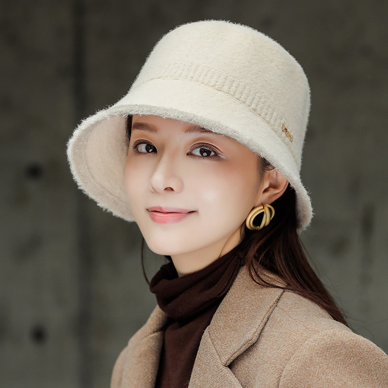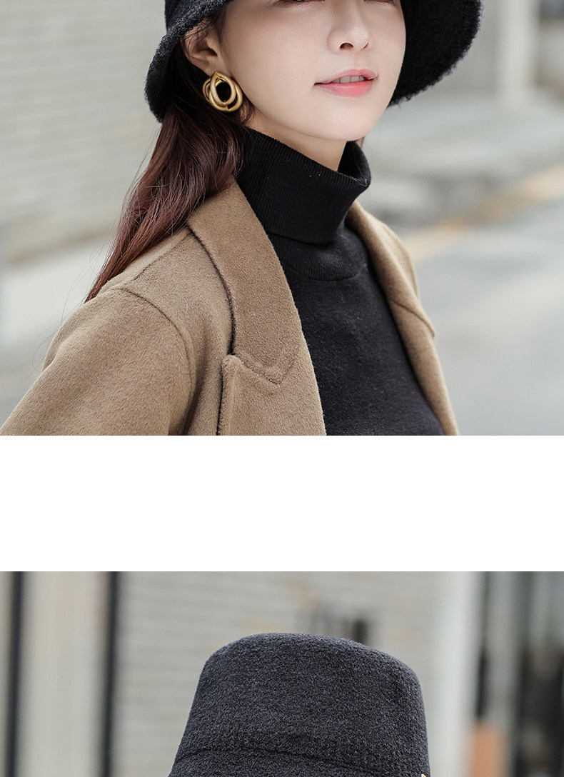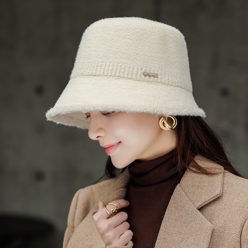 Ведро шляпа женщина осень и зимняя корейская версия дикой шерстяной шерстяной шерстяной шерсти