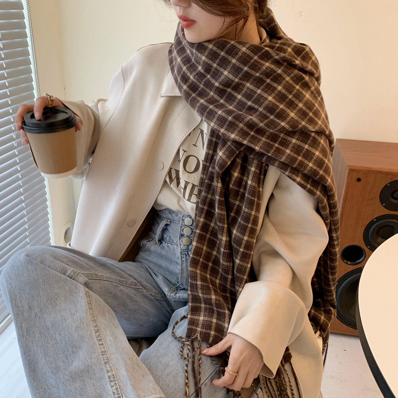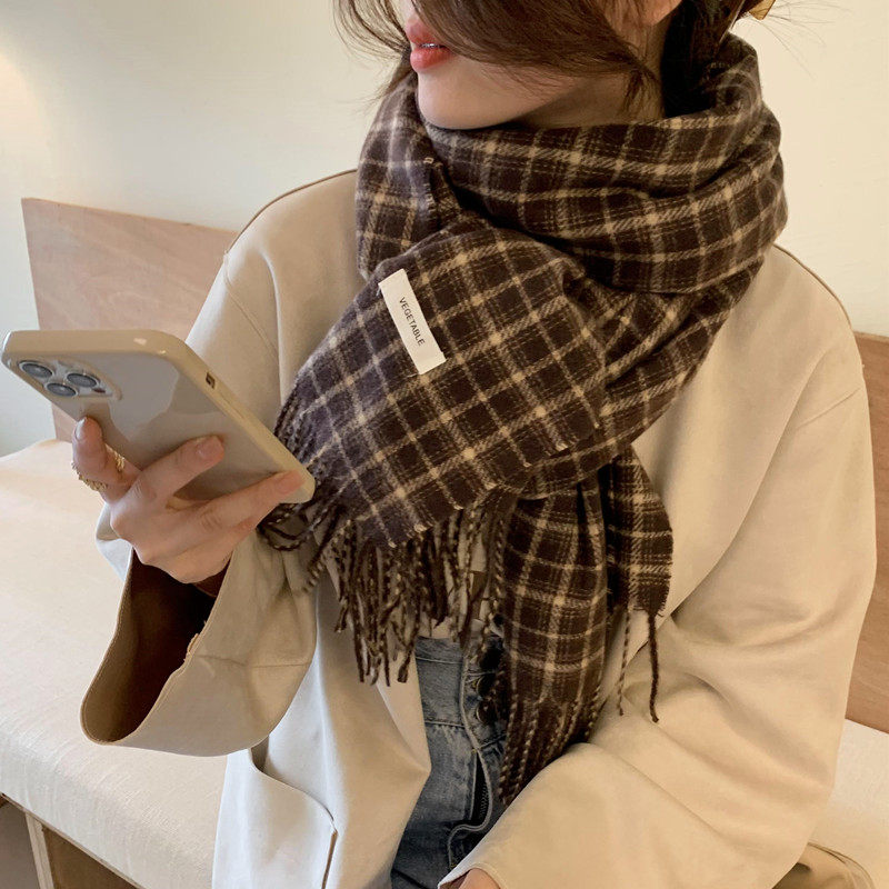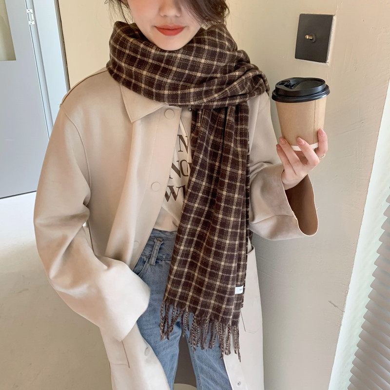 Демисезонный шарф, универсальная удерживающая тепло кофейная накидка для школьников из искусственного меха, в корейском стиле, увеличенная толщина